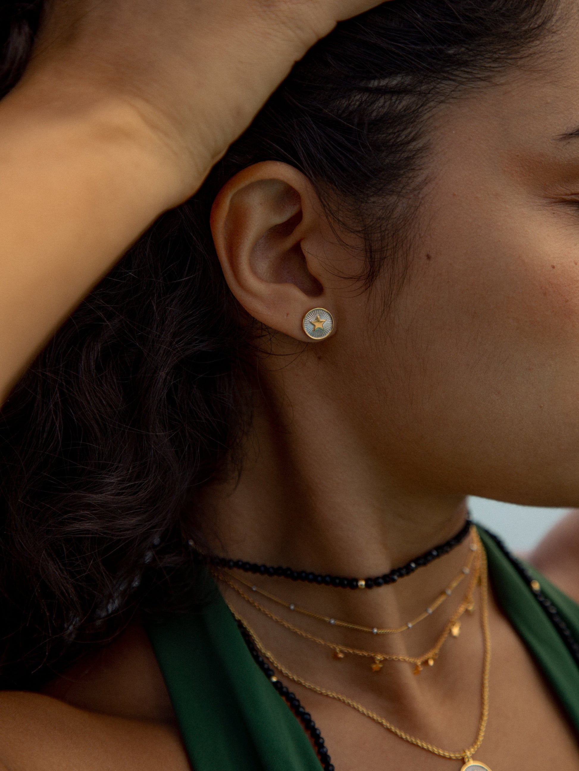Add a touch of elegance and sparkle with our JASMIN STUD earrings. These star-shaped studs are made with 18k goldfilled hypoallergenic material, perfect for sensitive ears. Upgrade your accessories game with these versatile and eye-catching earrings.