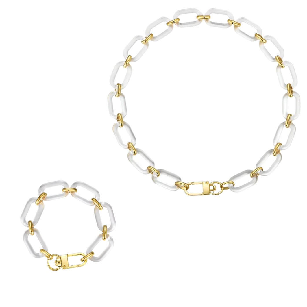 Our new Jenna Acrylic Necklace and Bracelet are selling so well individually we decided to put together the perfect set for this Spring/Summer season!