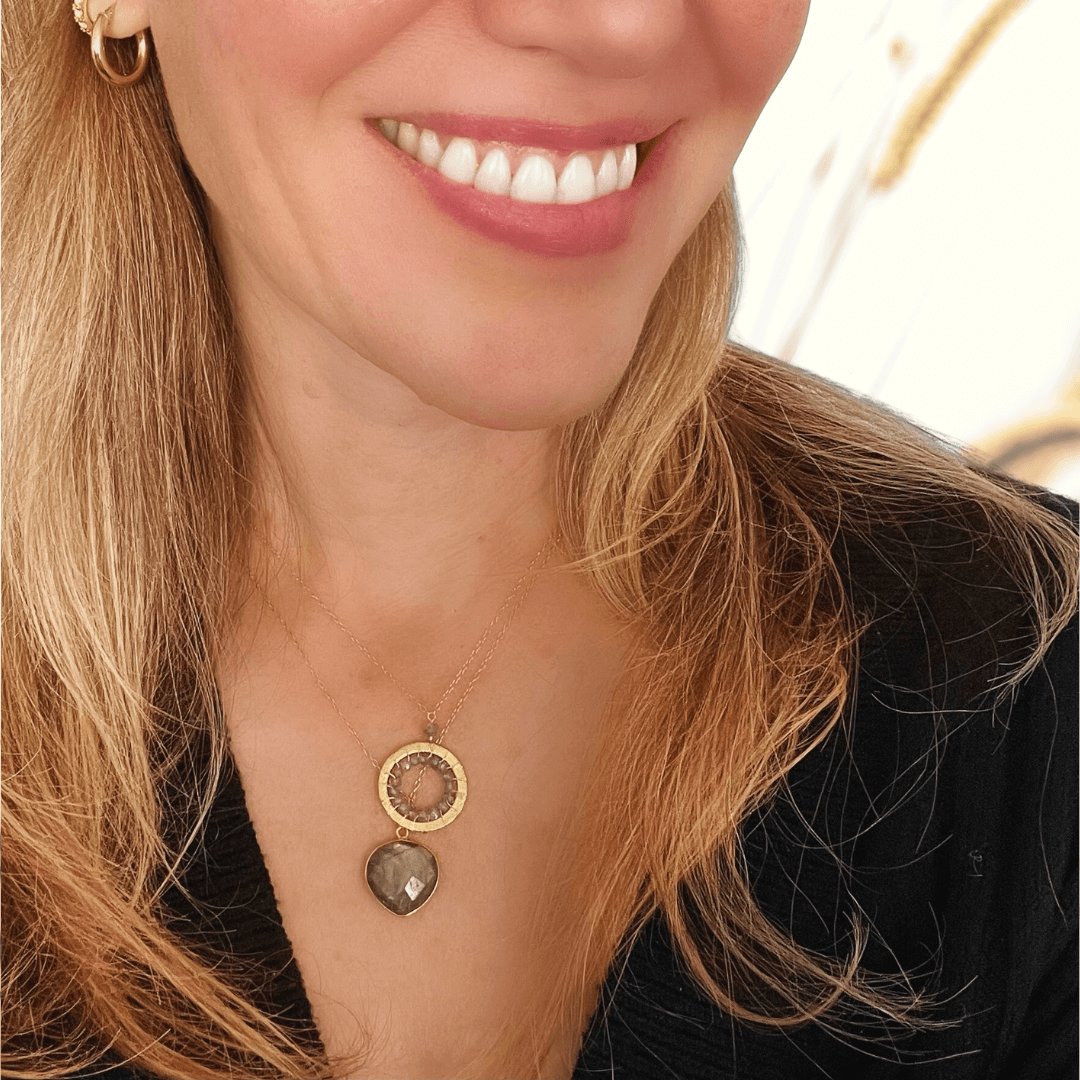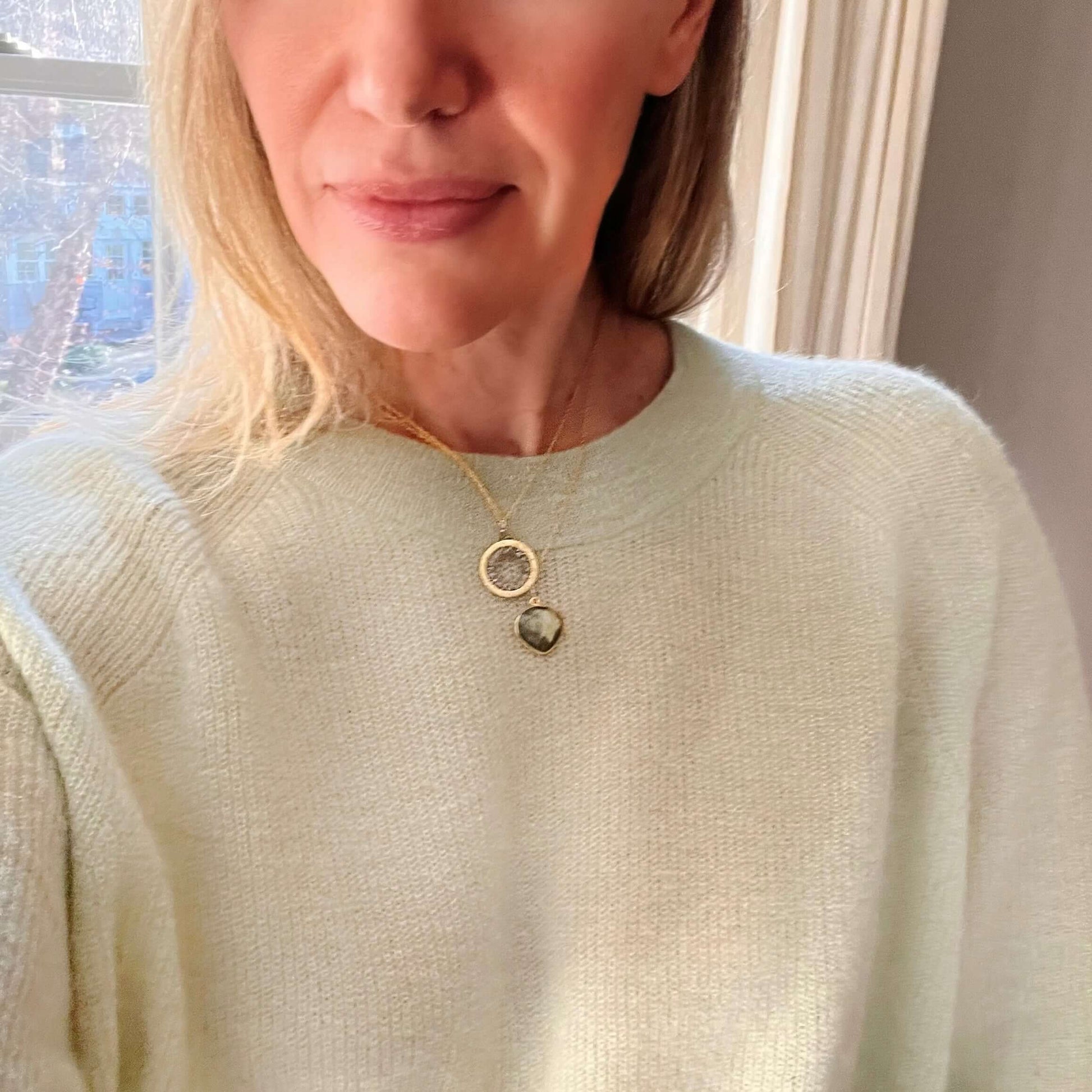 The perfect, wear-with-everything, layering pendant. Indulge yourself with this exquisite, handmade Labradorite pendant. Crafted in 14k gold plated over fine Italian sterling silver. Necklace is adjustuable, measuring 16-18" with a 2" extender. Each piece is made with care in our New York City studio and packaged in a luxurious gift box. Our innovative plating technique ensures that this pendant will remain tarnish resistant, while the unique natural gemstones make each one truly one-of-a-kind.