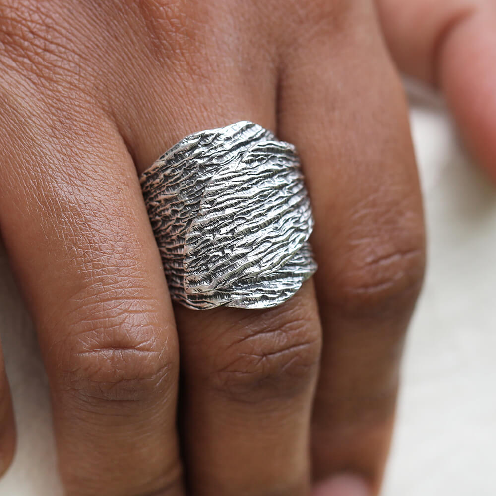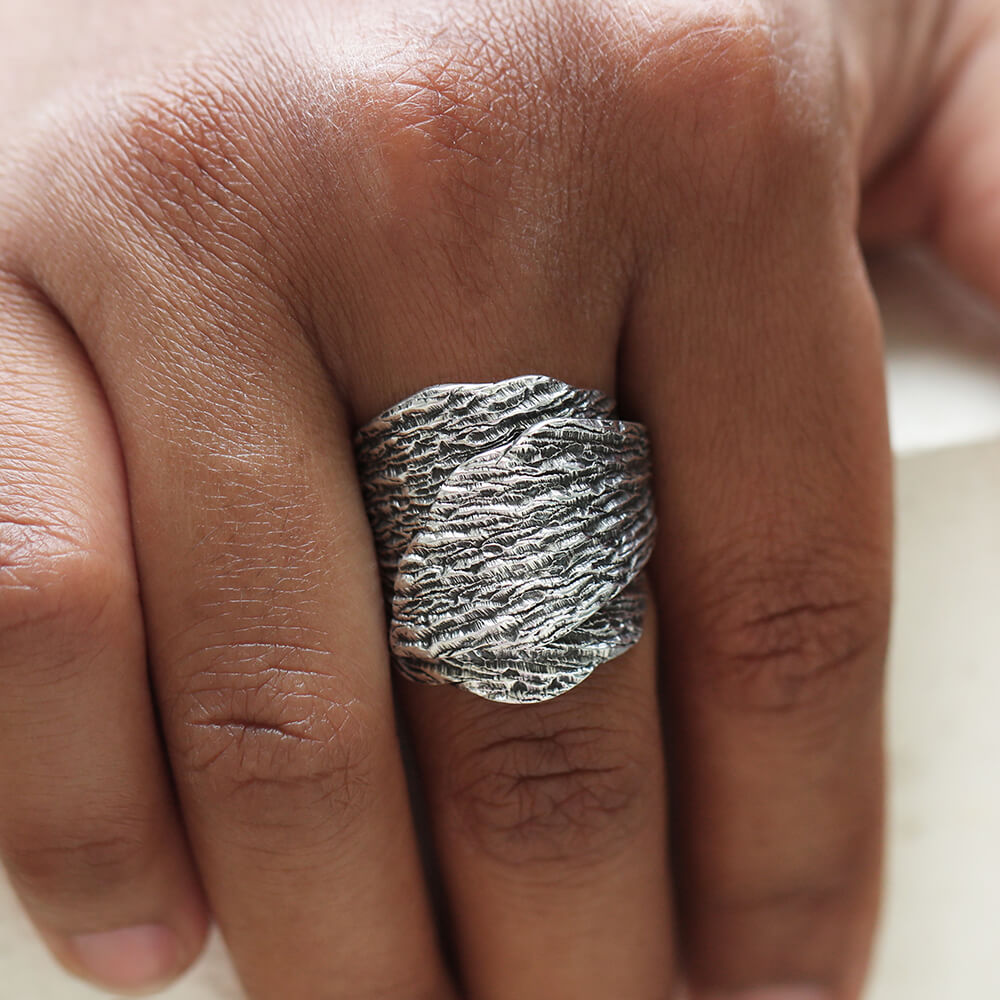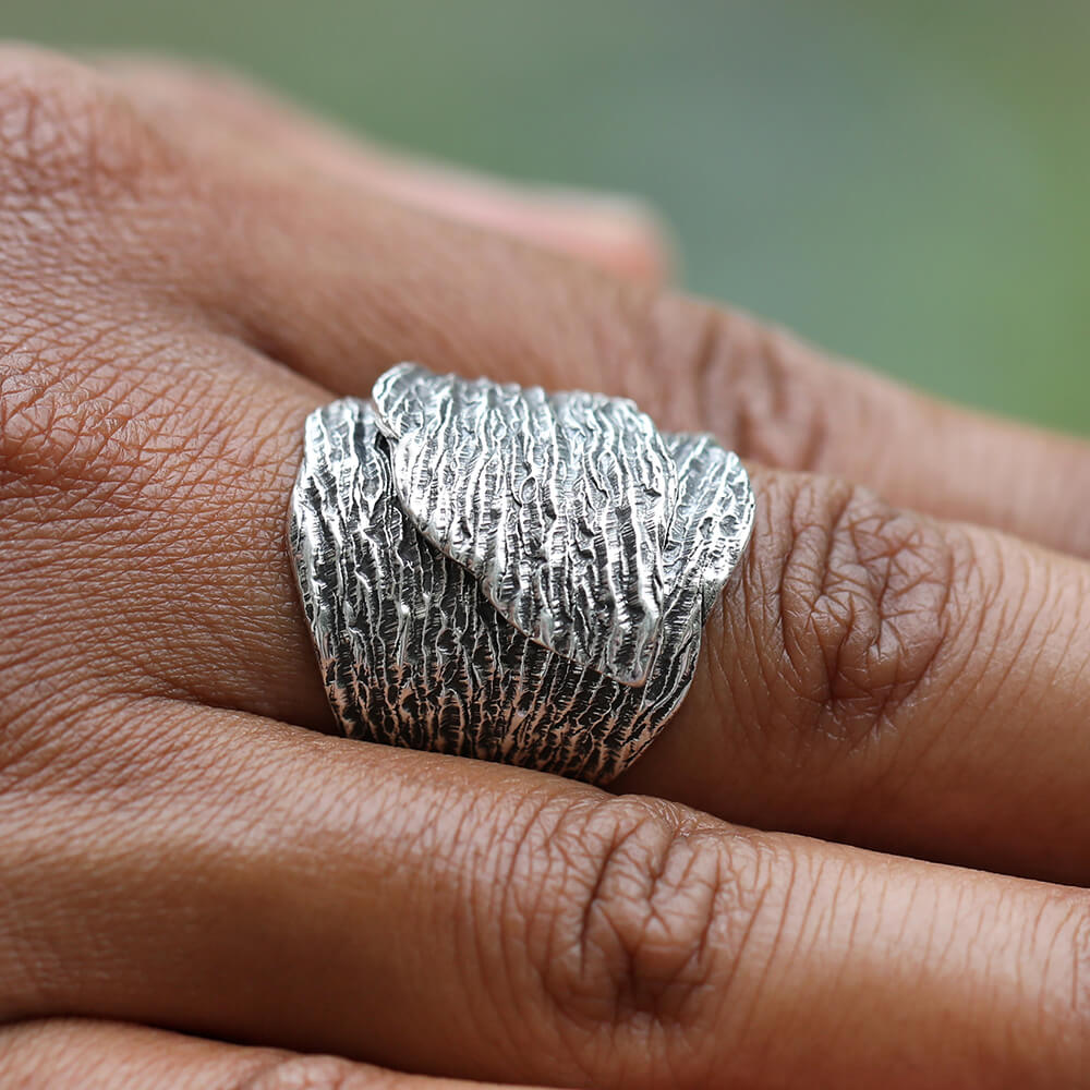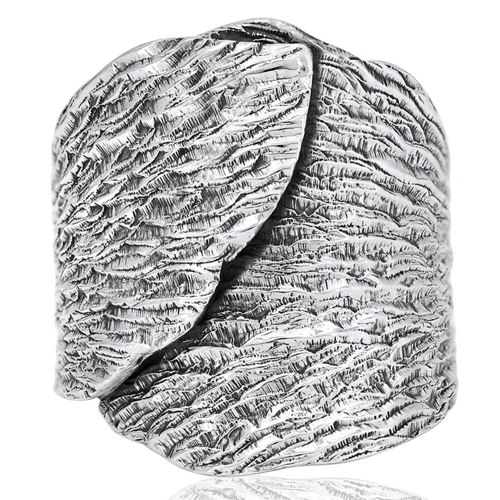 Impressive High-Quality 925 Sterling Silver Wrapped Wide Leaf Ring for Women.