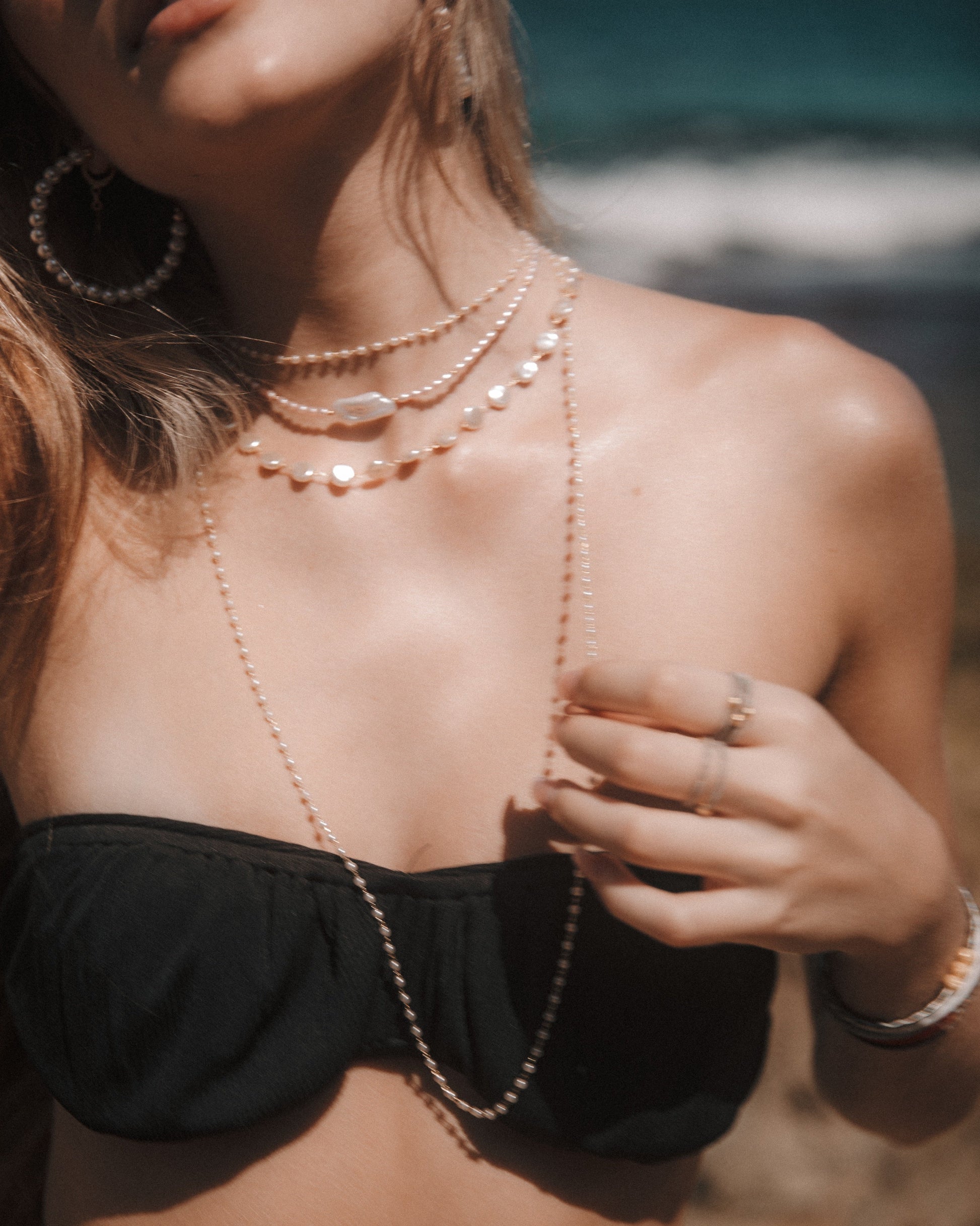 Enhance your beauty with the LEISHA PEARL-48" necklace. The SPECTACULAR LONG NECKLACE features CLASSY PEARLS that can elevate any outfit. Made with BRAZILIAN 18K GOLDFILLED, it is a MUST-HAVE for a sophisticated and exclusive look.