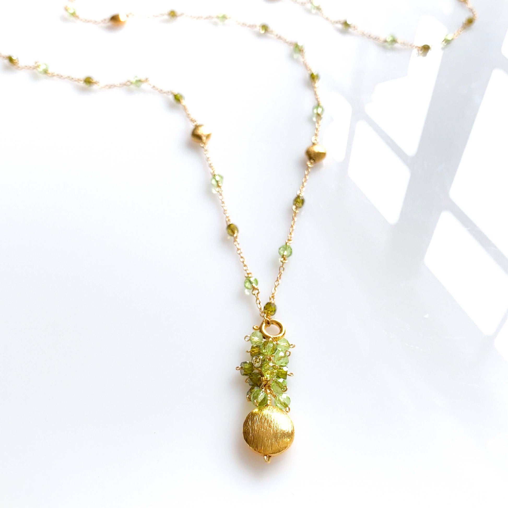 Get gorgeous sparkle from this long convertible gemstone necklace. Made with Peridot and Green Amethyst Gemstones.