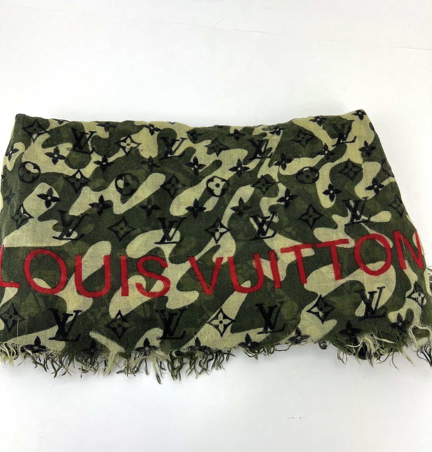 LOUIS VUITTON Green TAKASHI MURAKAMI Monogramouflage Shawl Stole Scarf