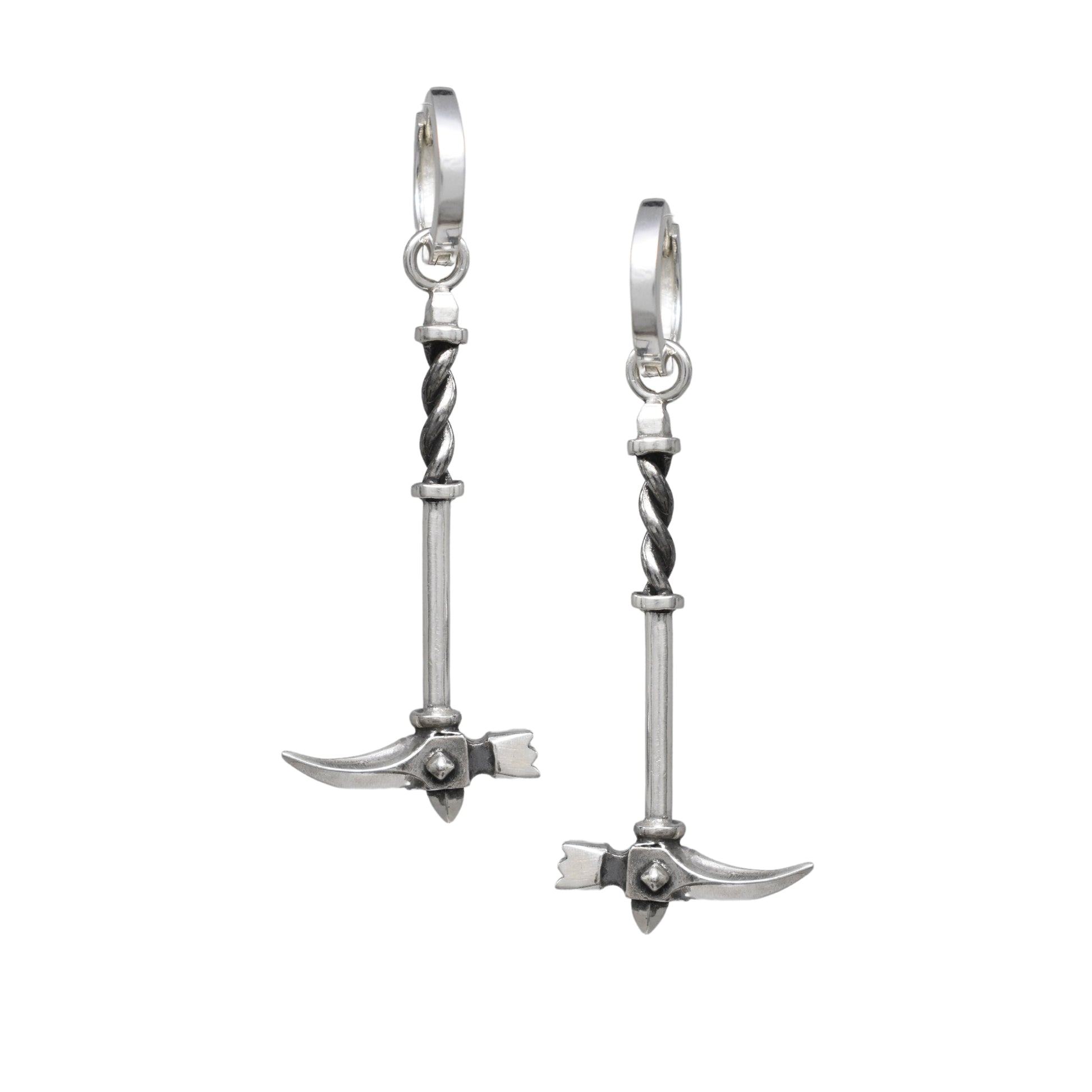 Our signature Armory Collection weaponry charms on a simple and sleek huggie earring. These huggies layer beautifully with other earrings, and can hold any of our house-made charms.