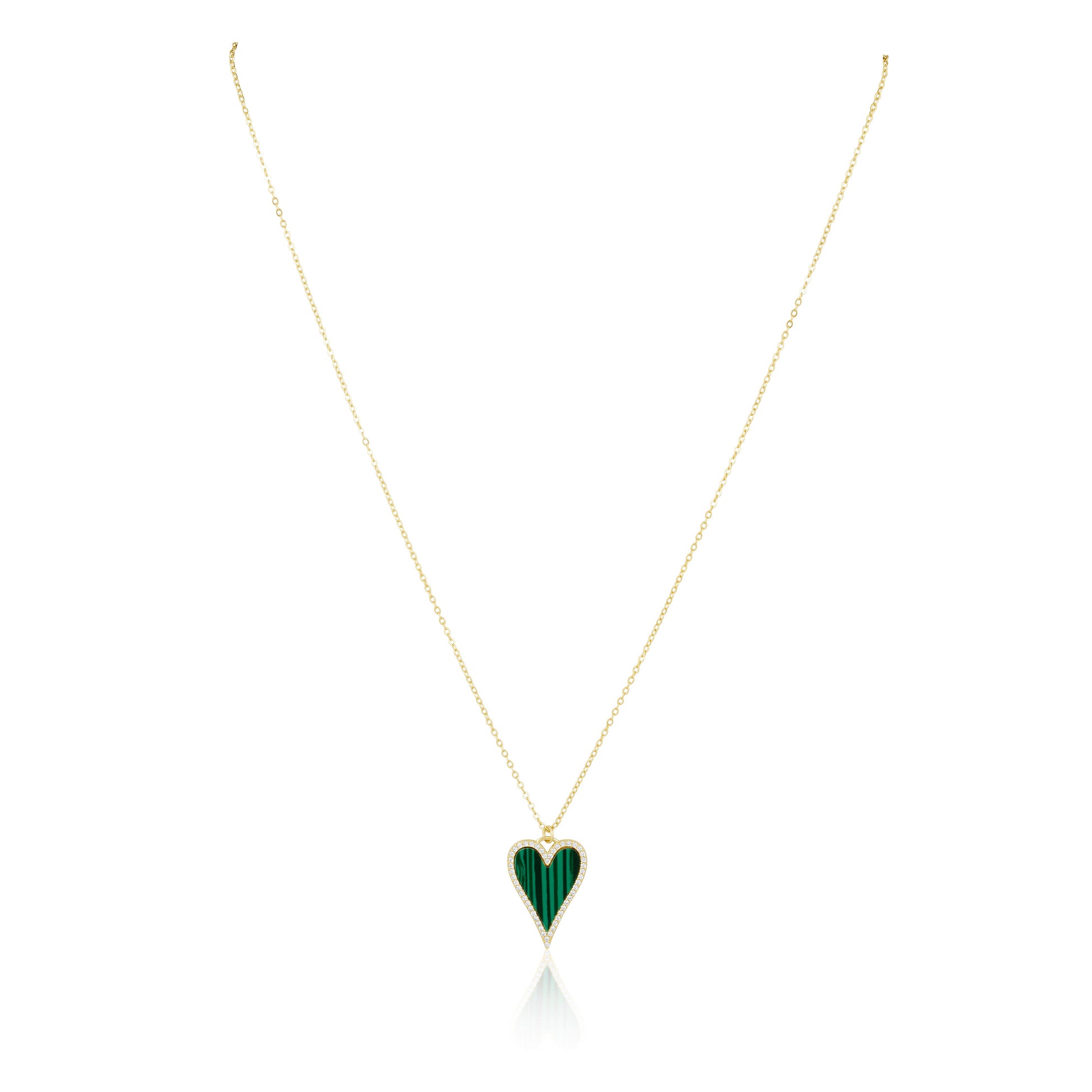 Add a touch of cuteness to your outfit with Lucy CZ Heart Necklace. The green heart pendant and pave outline will bring a playful charm to your everyday look. Share love and joy with this adorable accessory.