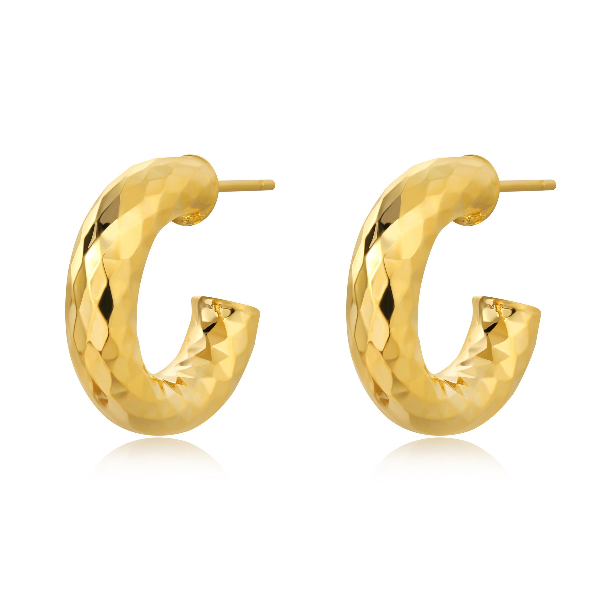 Add a golden glimmer to any outfit with the Madisen Hoop! This imprinted piece is perfect for adding a subtle (but stylish!) flair to your jewelry collection. A perfect pick-me-up for your wardrobe, it's sure to become your go-to accessory!
