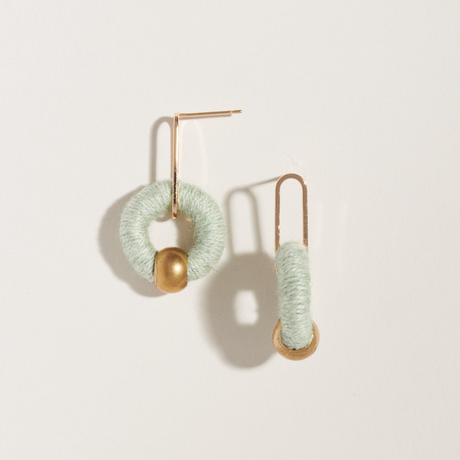 Named after a modern and cool bride we recently collaborated with, the Mandy Earrings are the perfect lightweight earring drop for you, your bridal party, or a gift. Shown in Mint Wool and modeled in a different colorway for scale only.