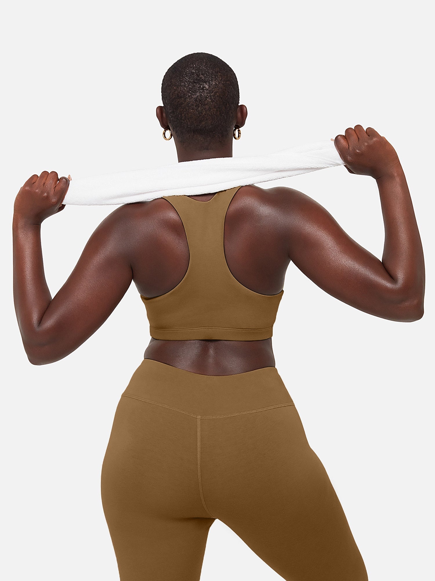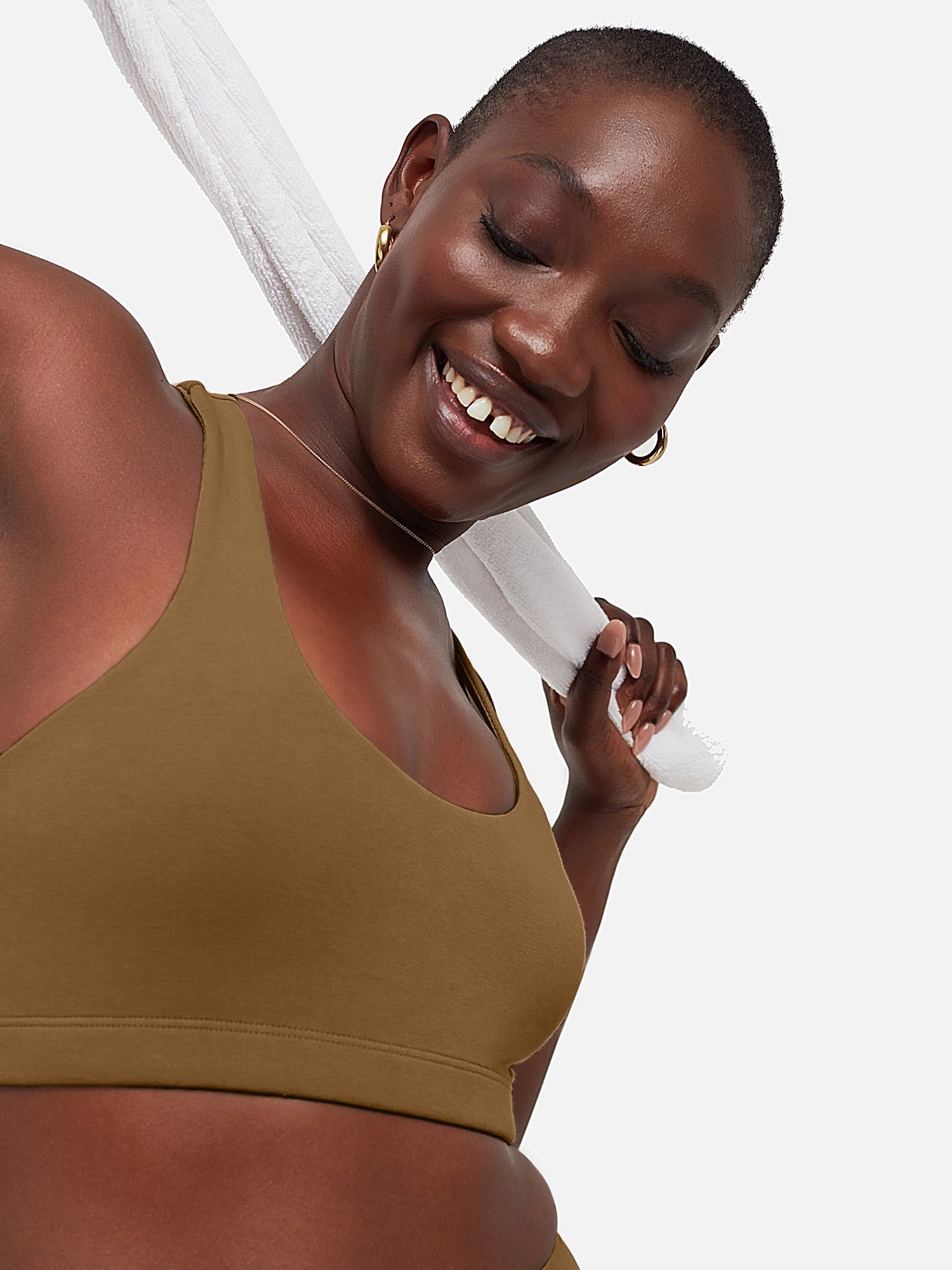 Our Organic Stretch Sports Bra is constructed with double-layered, unpadded fabric while providing coverage and support. This workout staple is perfect for low impact exercise and stretches for easy on and off (even after an arm workout). Most activewear is notoriously bad for the environment because it's made from synthetic materials that shed microplastics when washed. Our Organic Stretch is an entirely different story. While it's impossible to get the necessary stretch for activewear from pure cotton, we got pretty damn close with a blend of 92% Organic Cotton and only 8% Spandex. If you are between cup sizes or prefer some room in your band, we recommend sizing up.