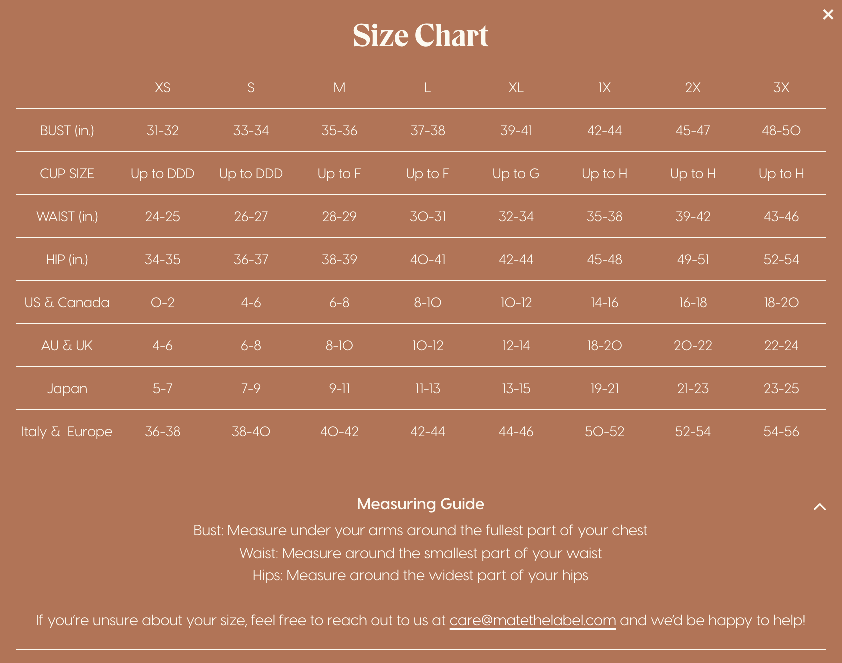 - 1X: Up to H Cup, Band Size 40"- 42"