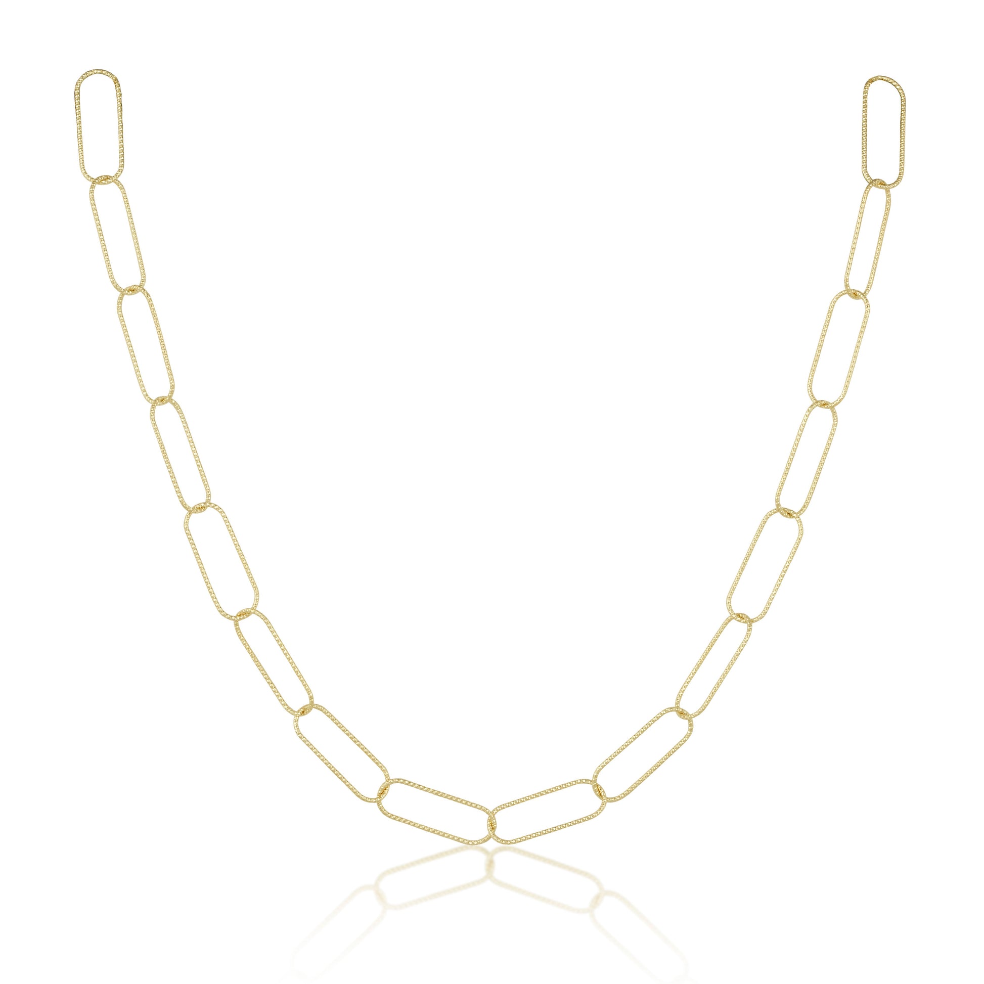 Elevate your everyday look with the McKenna Link Chain. This paperclip style chain adds a modern touch to any outfit. The unique design is eye-catching and versatile, making it the perfect addition to your jewelry collection. Wear it alone or layer it with other pieces for a personalized look that is sure to impress.