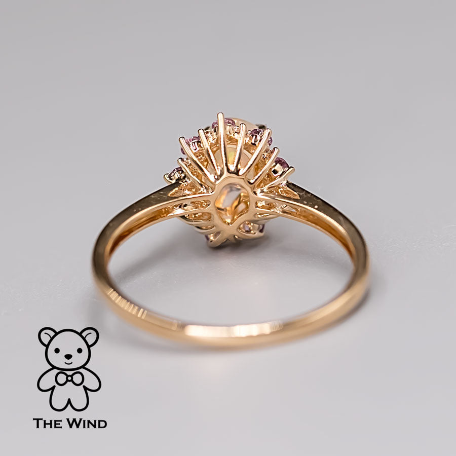 Mexican Fire Opal Amethyst Diamond Engagement Halo Ring 18K Yellow Gold