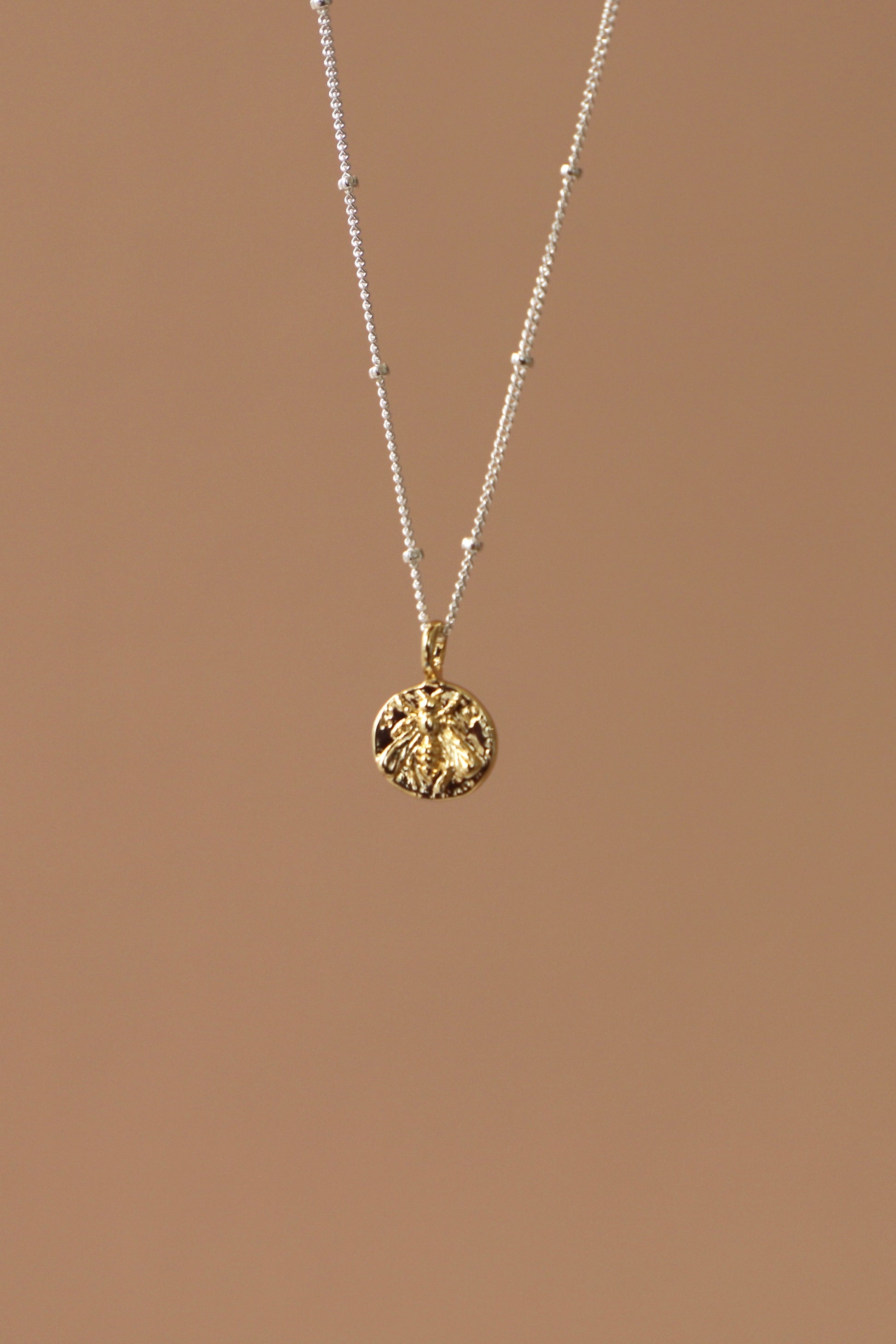 Our Mini Bee Medallion Necklace is a modern take on a classic piece. The two tone metals make this piece versatile and easy to pair with anything. The contrast of the gold mini bee medallion placed on our classic sterling silver satellite chain makes it stunningly eye catching.