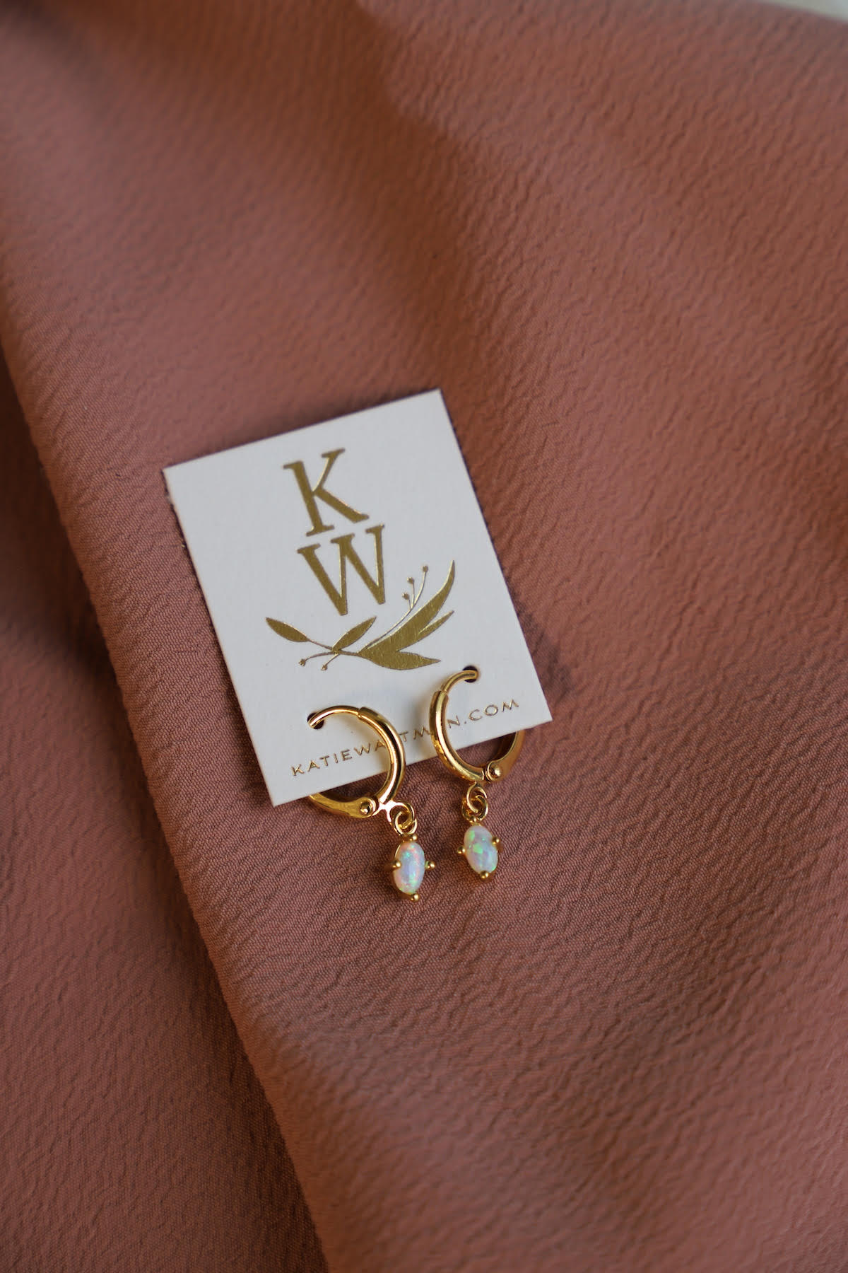 Our Mini Oval Opalite Huggies are the perfect touch to add to your ear stack. The mini oval opalite adds a unique shimmer that compliments anyone who wears it. These earrings make the perfect gift and we love pairing them with our Opal Teardrop Necklace!