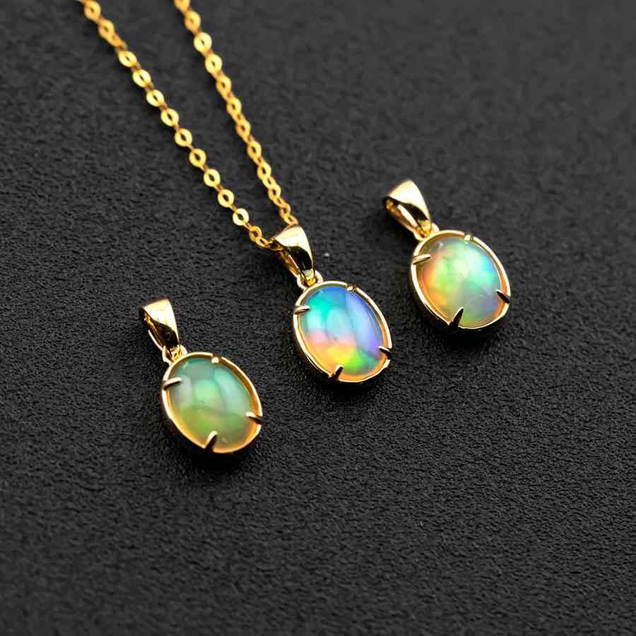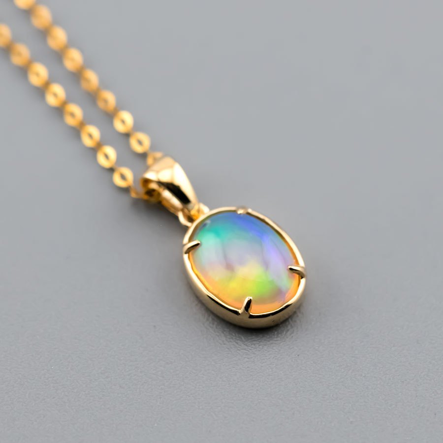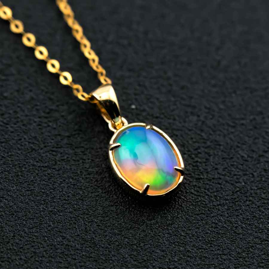 Minimal Style Oval Ethiopian Opal Pendant Necklace 18k Yellow Gold