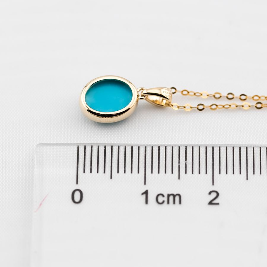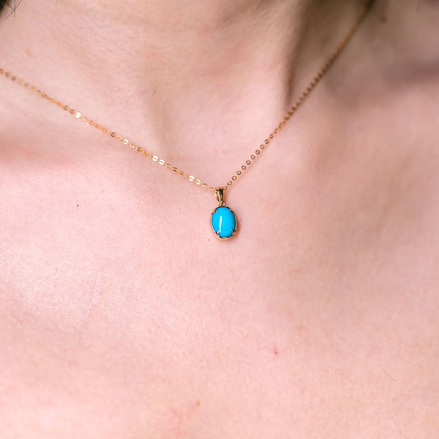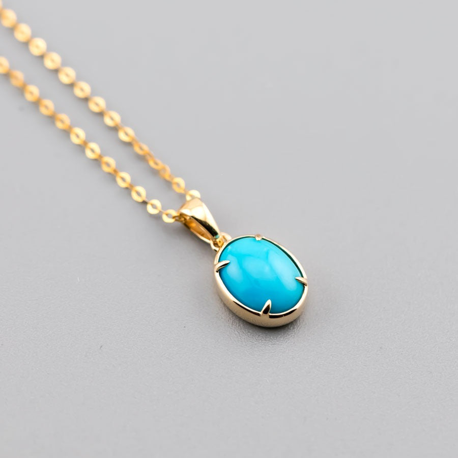 Minimal Style Oval Turquoise Pendant Necklace 18k Yellow Gold