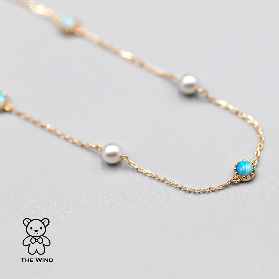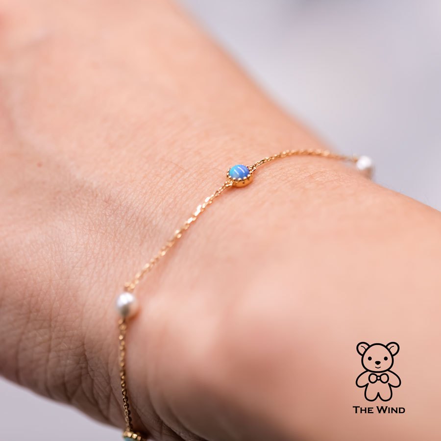 Minimalist Australian Solid Opal & Pearl Bracelet 18k Yellow Gold