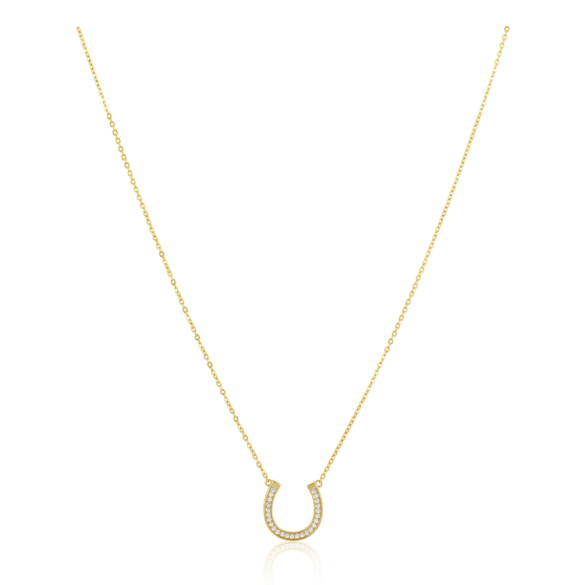 Get lucky with our Montana Horseshoe Necklace! This beautiful necklace features a sparkling pave horseshoe pendant, perfect for adding a touch of glam to any outfit. Show off your love for horses and add a bit of good luck to your day with this stylish piece.