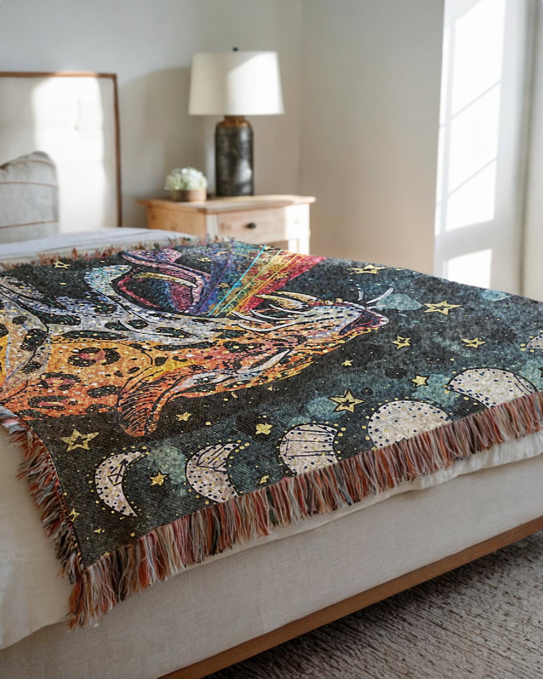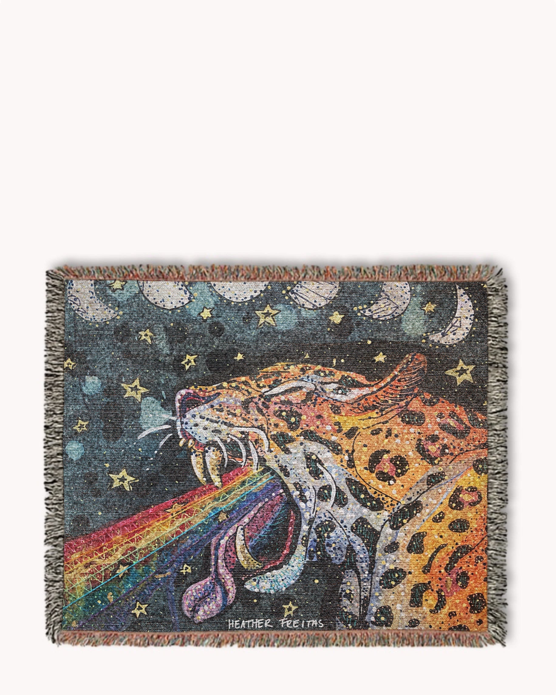 Woven with rich texture and timeless charm, this jacquard throw features original artwork by Heather Freitas, transformed into a keepsake meant to be lived with and loved. Whether folded at the foot of your bed, draped over a favorite chair, or hung as a tapestry, it adds a touch of nostalgia to your space—like something passed down, or discovered on a magical antique shop afternoon. A cozy companion for quiet days, storybook evenings, and slow, beautiful living.