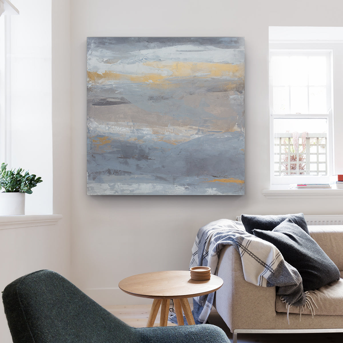 Soft and neutral warm and cool tones layer over one another to create this soothing abstract composition.