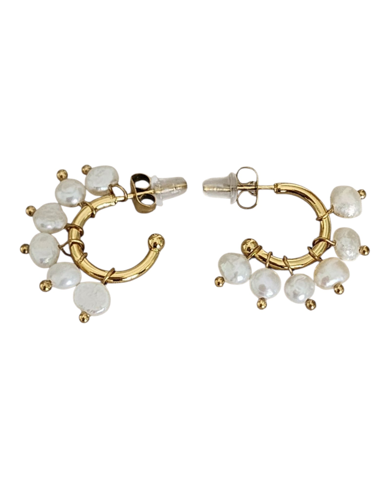 Elevate your elegance with HALIA, a pair of small hoop earrings crafted from hypoallergenic 316 stainless steel. Featuring lustrous pearls, these hoops combine timeless beauty with durable, skin-friendly materials, perfect for sensitive ears and everyday sophistication.