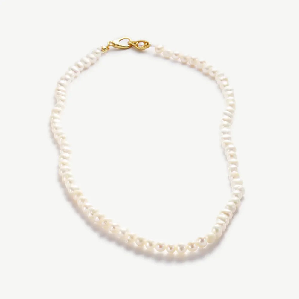 Nina Bonfils Pearl Necklace- Our 18k gold plated pieces are made to last forever, Redefining lifelong essentials. Our jewelry is based on an understated glamour to accompany you through every joy of life. Our materials are responsibly sourced from suppliers who follow conflict-free and socially responsible practices.