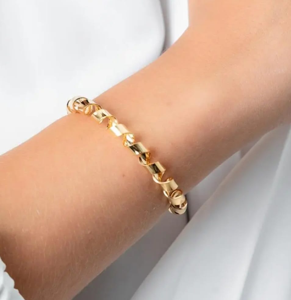 Introducing NOHA - the ultimate accessory for the luxurious lifestyle. This spectacular bracelet boasts 18k Brazilian goldfilled links that exude opulence and sophistication. The 6.5" length, plus a 2" extension, ensures a secure fit. Elevate your look and make a statement with NOHA.