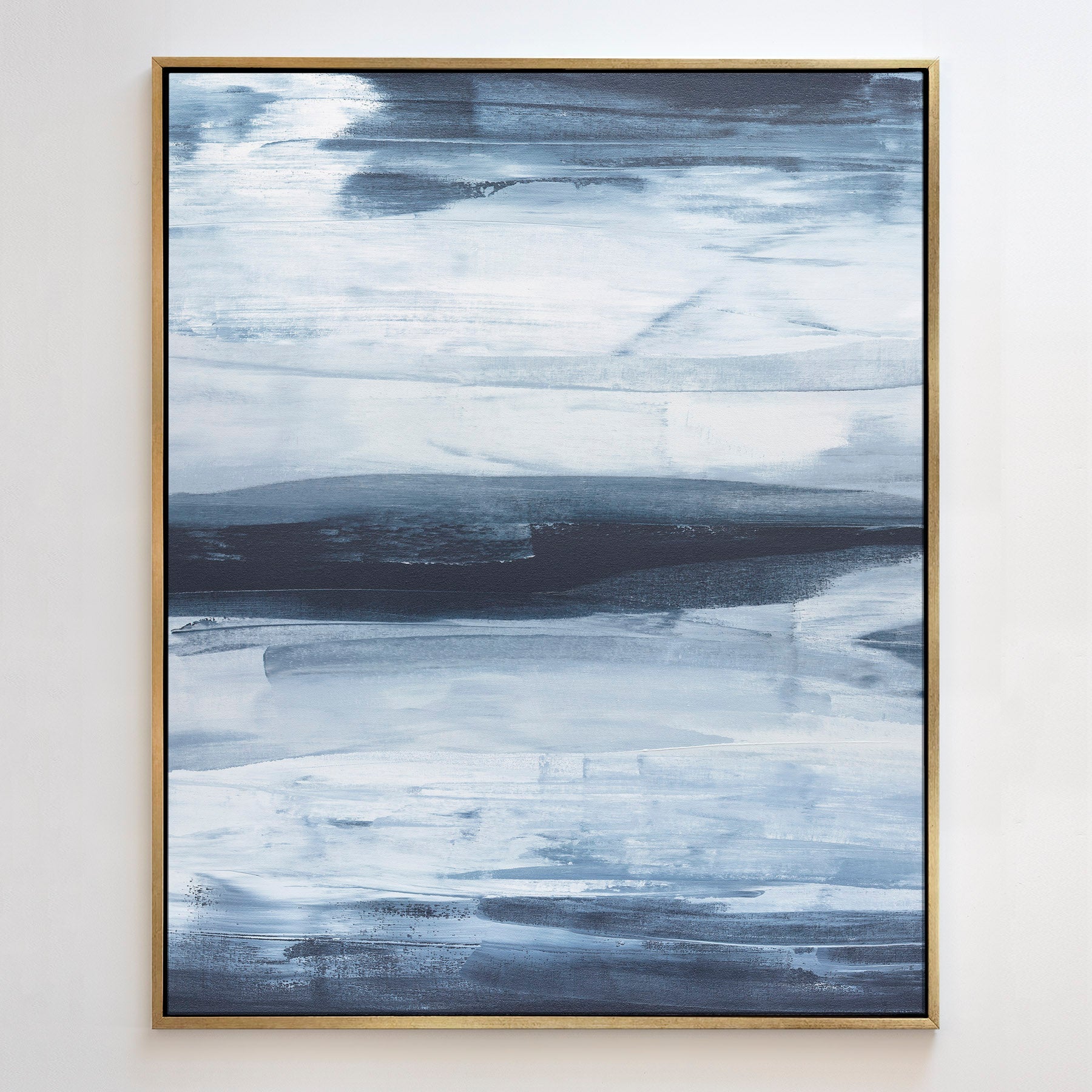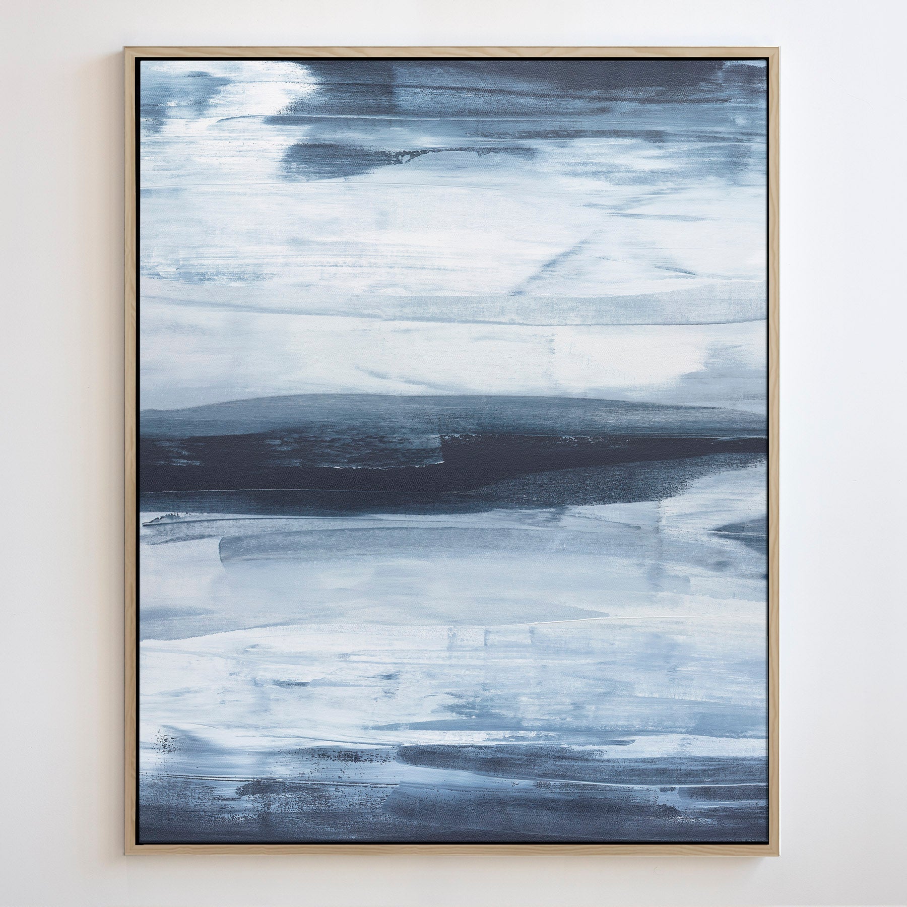 Capturing a coastal visual that fascinates, overwhelms and inspires. Tones of deep navy mingle with white creating soft middle toned blues to form this abstract coastal print. Pairs beautifully with Numinous No. 1.