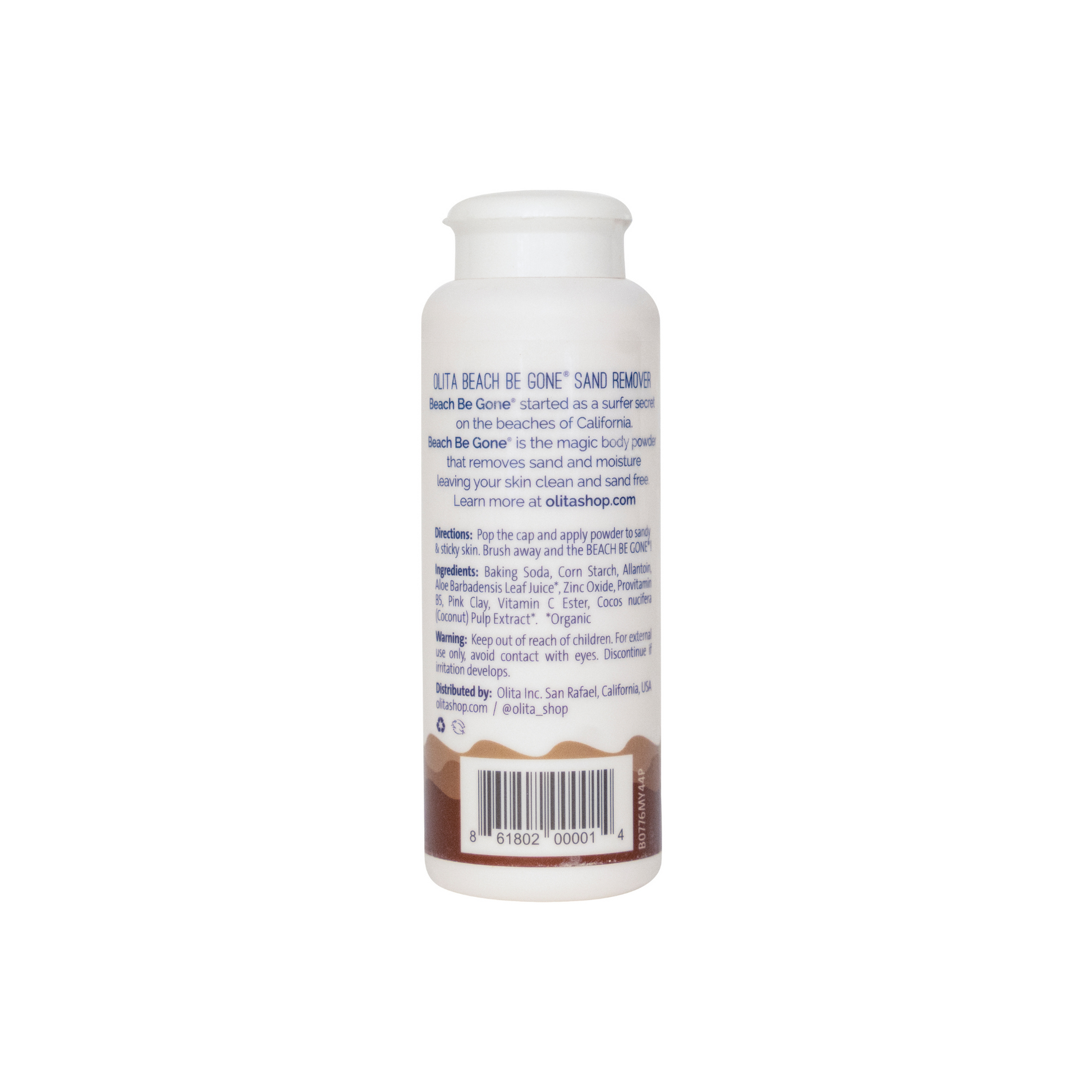 OLITA's Beach Be Gone proprietary blend of premium ingredients: Baking Soda, Organic Aloe Leaf Powder*, Non-Nano Zinc Oxide, Non-GMO Corn Starch, Provitamin B5, Allantoin, Vitamin C Ester, Cocos nucifera (Coconut) Pulp Extract*. *Organic