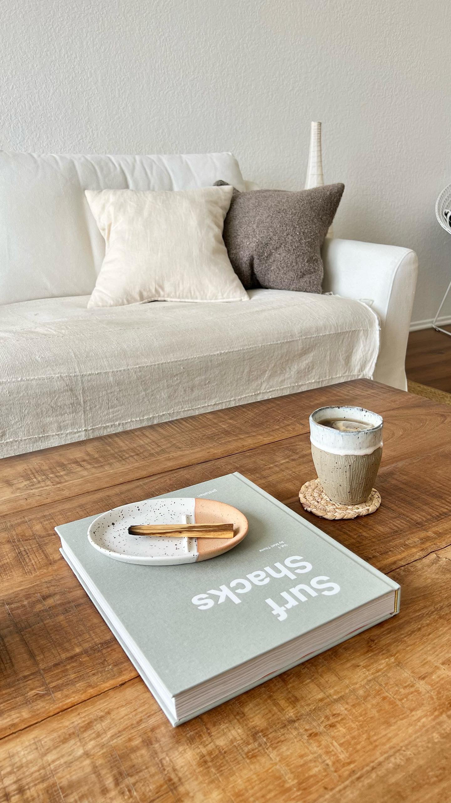The speckled white glaze mixed with raw terracotta offers a strikingly visual balance that can be displayed as stand-alone décor or paired with a terracotta Palo Santo holder and ceramic bowl to bring your room together.