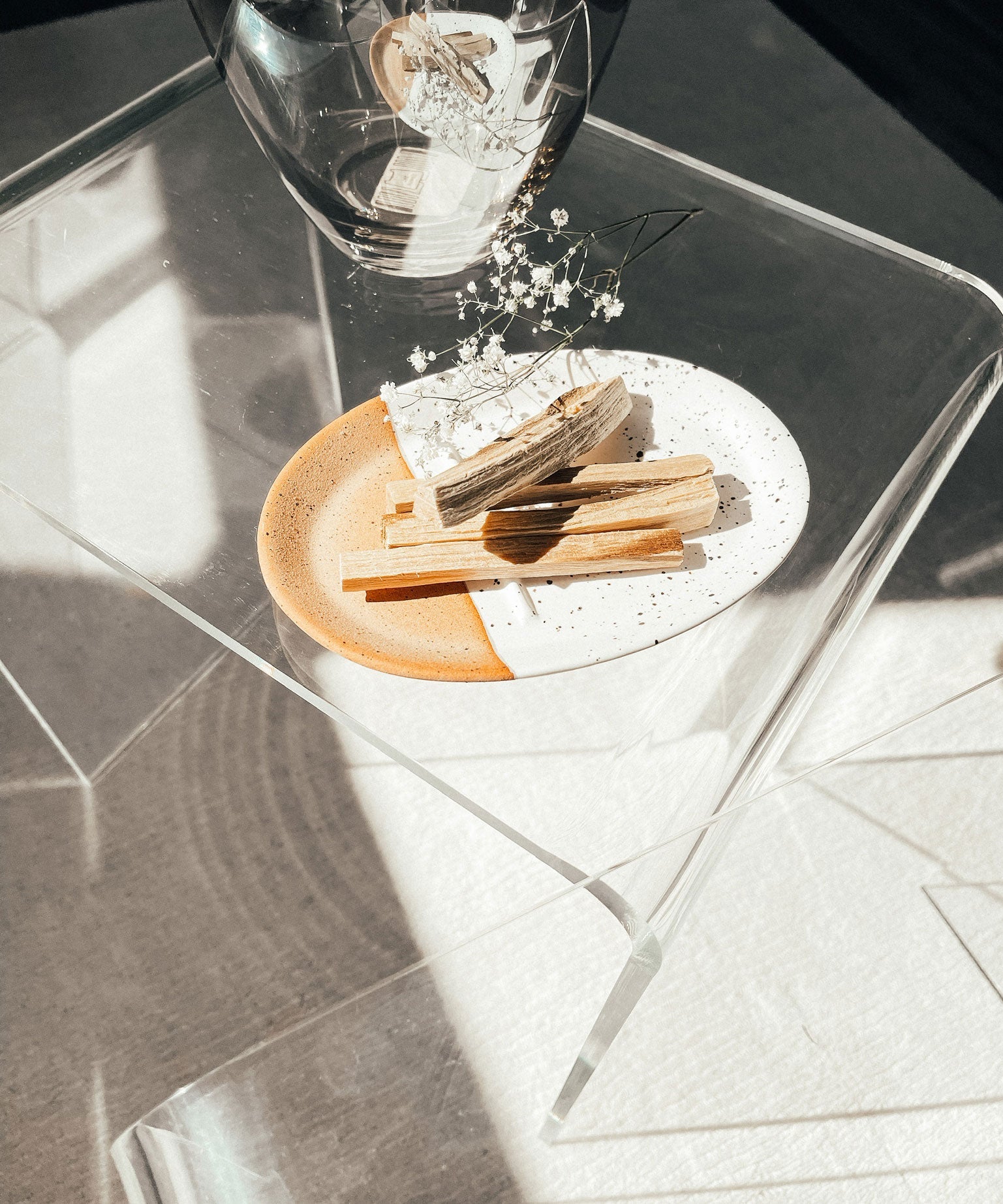Create a daily ritual and find your inner calm through the power of Palo Santo. This elegant oval dish is designed to hold Palo Santo, allowing the smoke to cease gradually while capturing any fallen ashes.