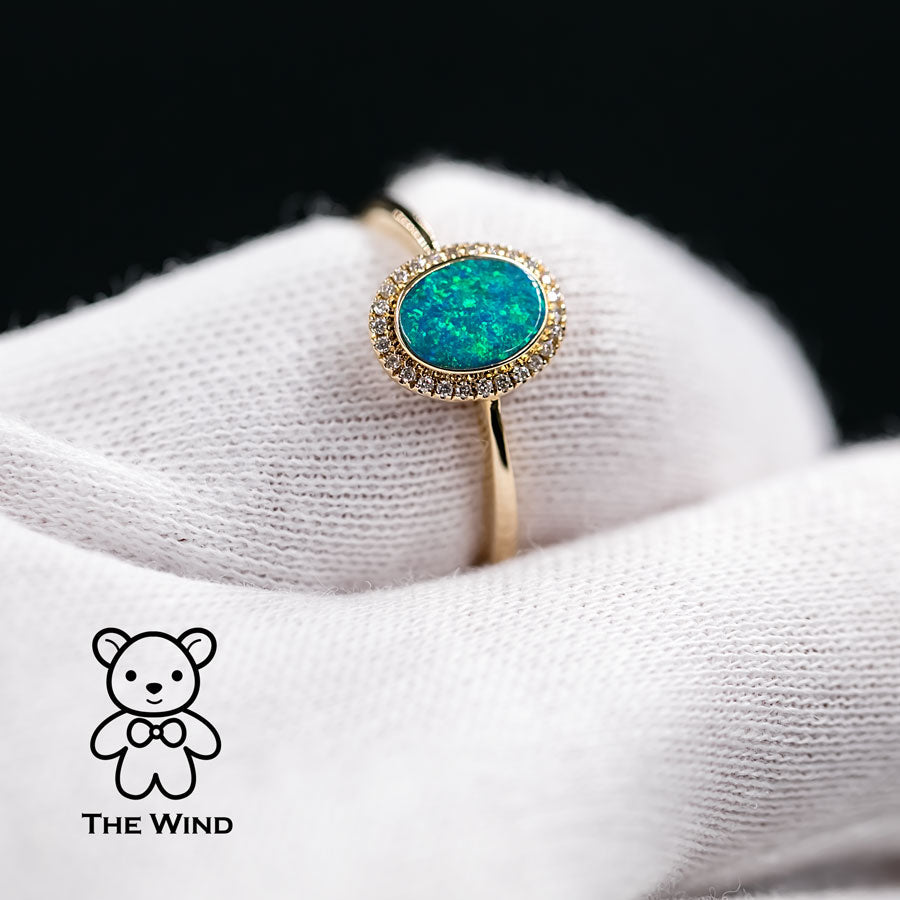 Oval Shaped Australian Doublet Opal Halo Diamond Ring 14k Yellow Gold