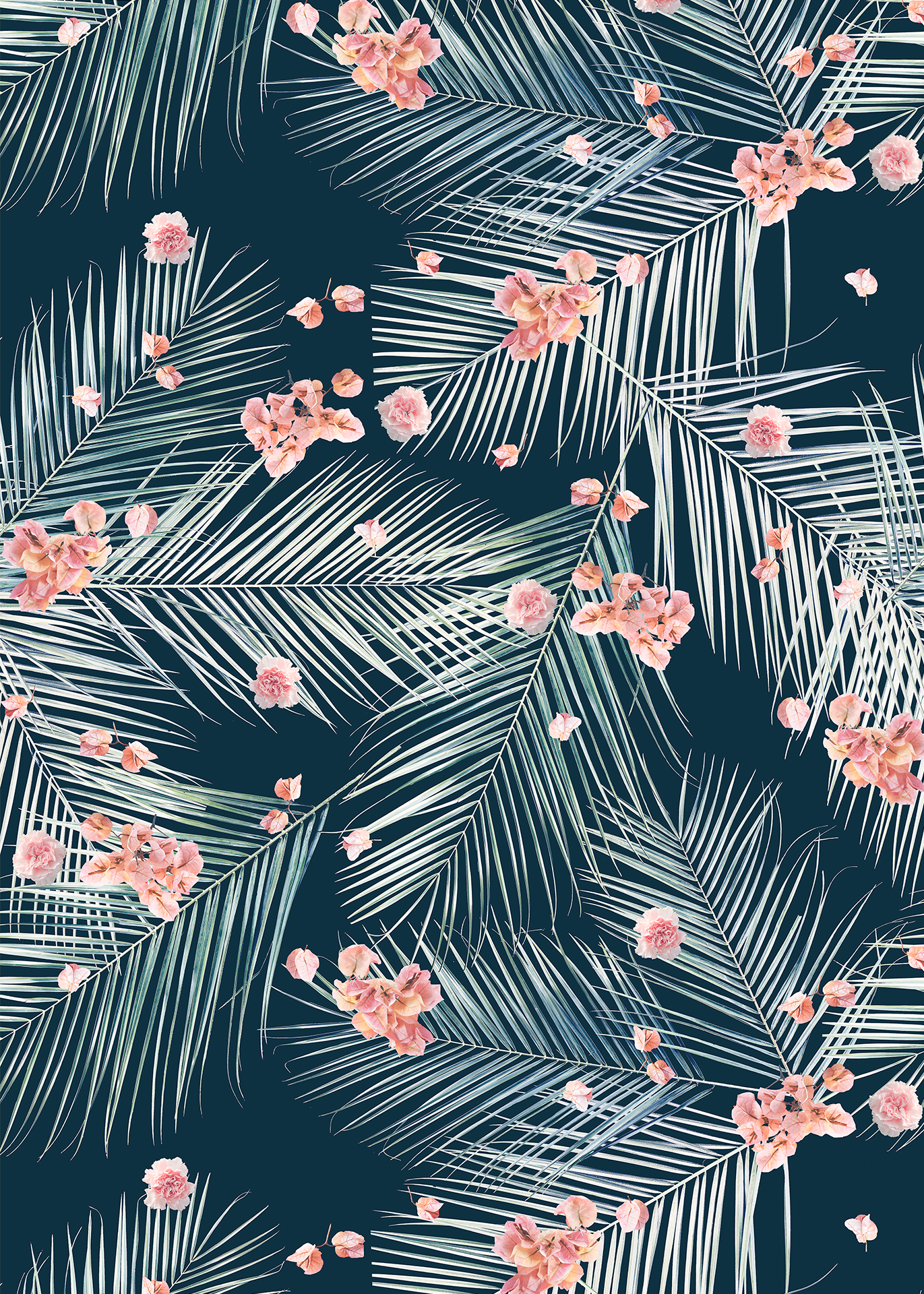 Palm Petal Wallpaper, navy