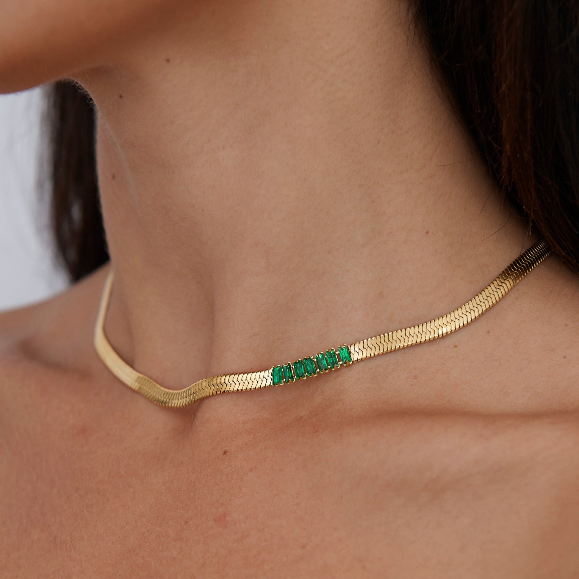 Reveal your risque side in our Parker Emerald Snake Chain. Featuring a beautiful snake chain with a pop of emerald cz stones.