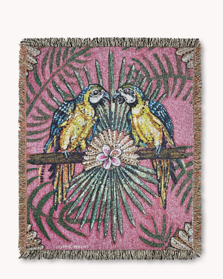 Woven with rich texture and timeless charm, this jacquard throw features original artwork by Heather Freitas, transformed into a keepsake meant to be lived with and loved. Whether folded at the foot of your bed, draped over a favorite chair, or hung as a tapestry, it adds a touch of nostalgia to your space—like something passed down, or discovered on a magical antique shop afternoon. A cozy companion for quiet days, storybook evenings, and slow, beautiful living.