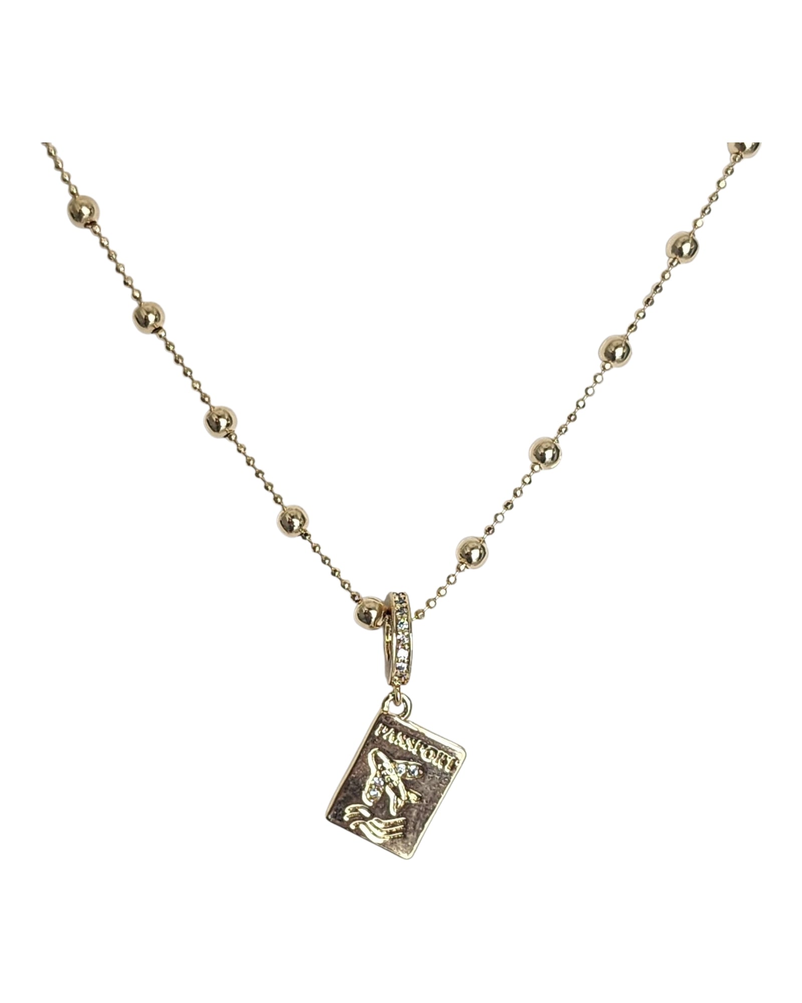 Elevate your style with this 16" hypoallergenic necklace featuring a unique passport charm. Designed for sensitive skin, it offers comfort without irritation while adding a touch of wanderlust to any outfit. Perfect for travel lovers who want a subtle yet meaningful accessory.