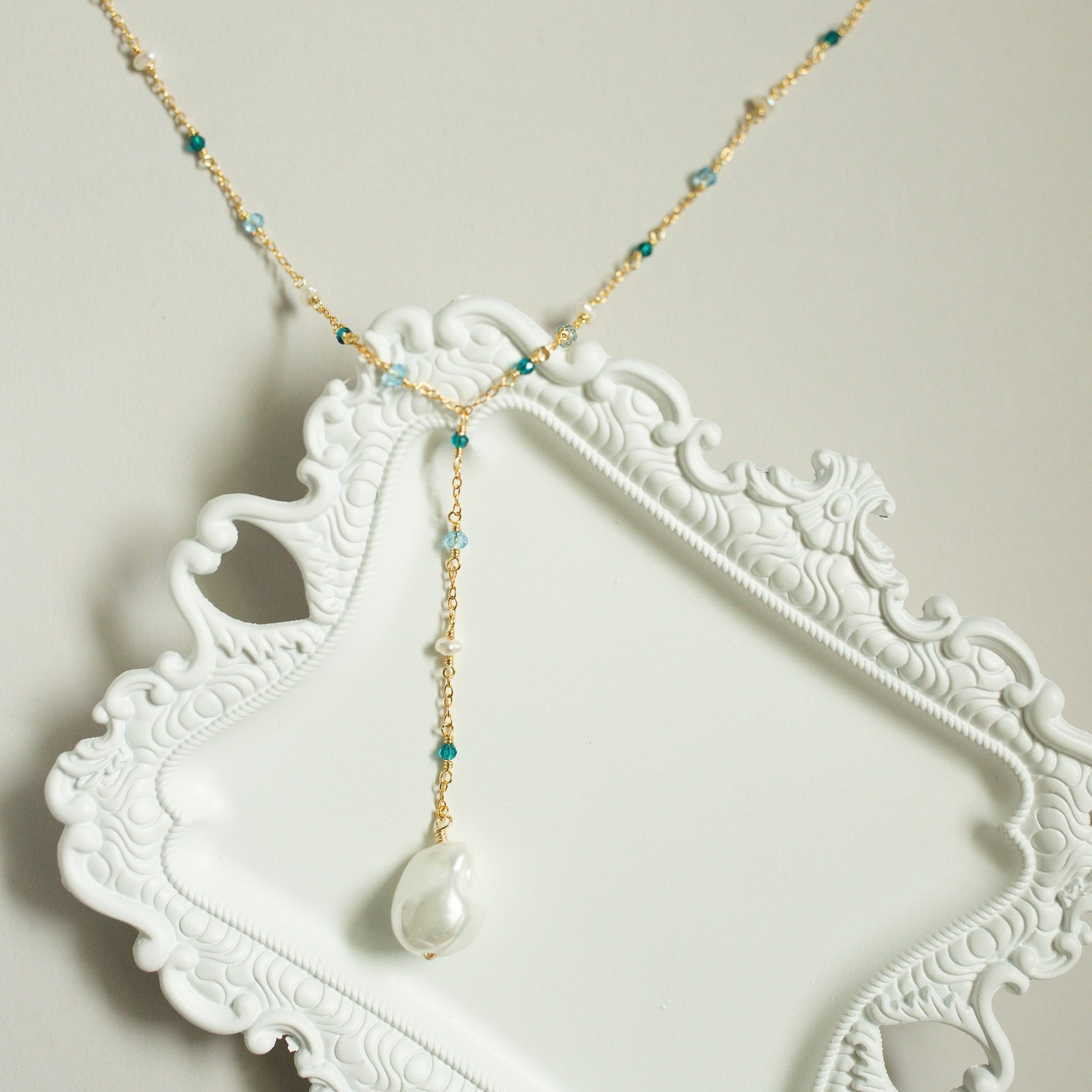 Indulge in the luxurious allure of our Pearl Gossamer Necklace. This stunning freshwater baroque pearl, with its subtle luster and pale sheen, is the embodiment of elegance and timelessness. Add one our signature, delicate gold beaded chains for the perfect layered look.