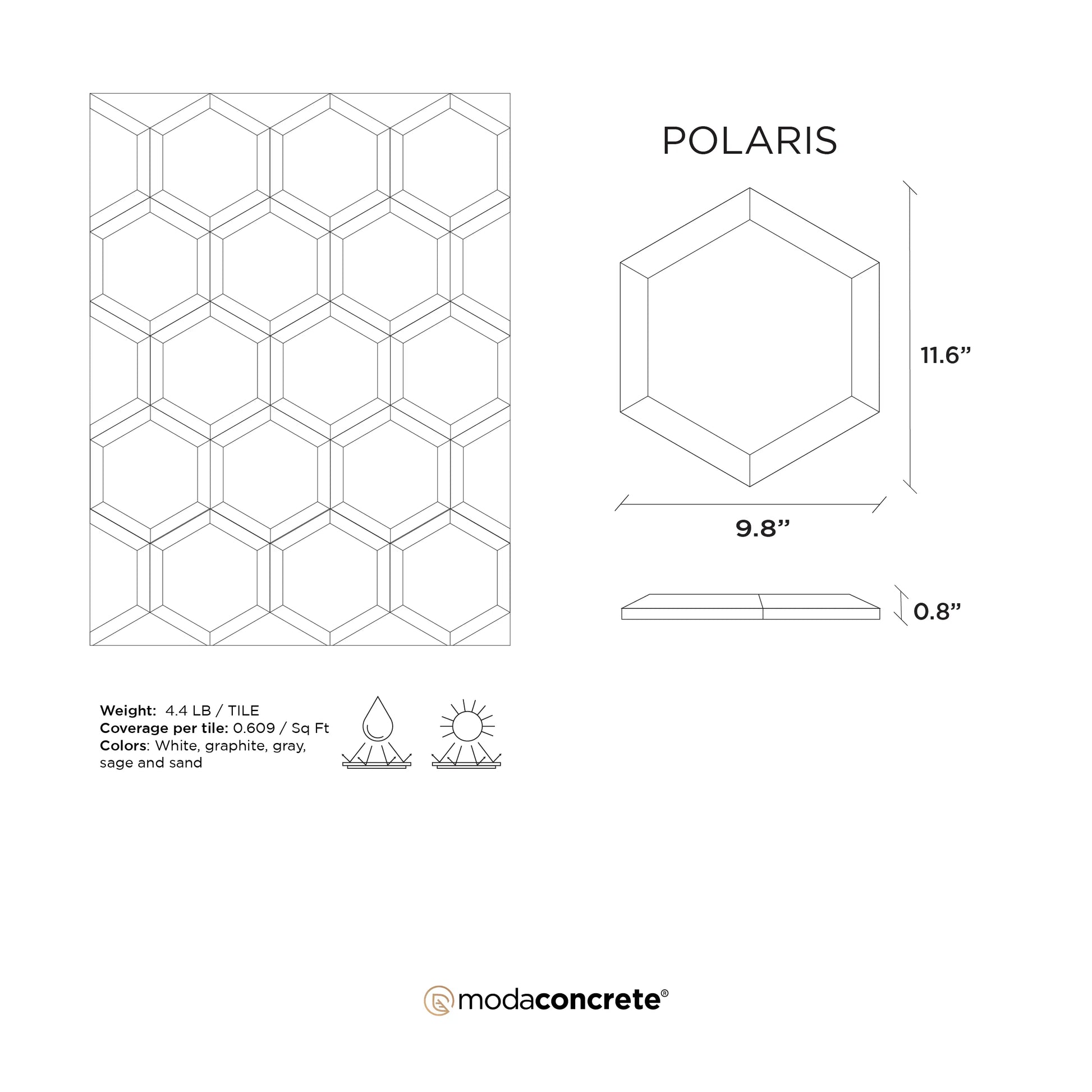 Illuminate your space with the striking design of POLARIS Concrete Wall Tile. This polygonal tile creates a multidimensional look that reflects light and adds texture to any interior or exterior wall. Perfect for modern, industrial, or minimalist designs, POLARIS brings an edgy, geometric flair that is both bold and versatile. Crafted from durable concrete, it is an ideal choice for feature walls or statement areas that demand attention.