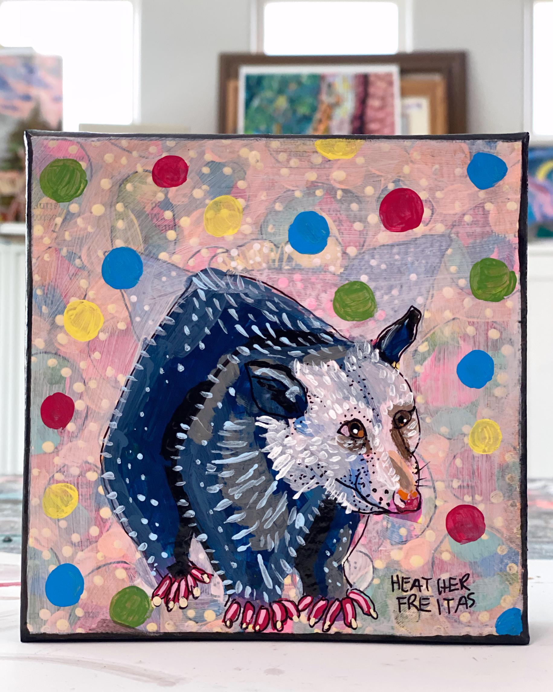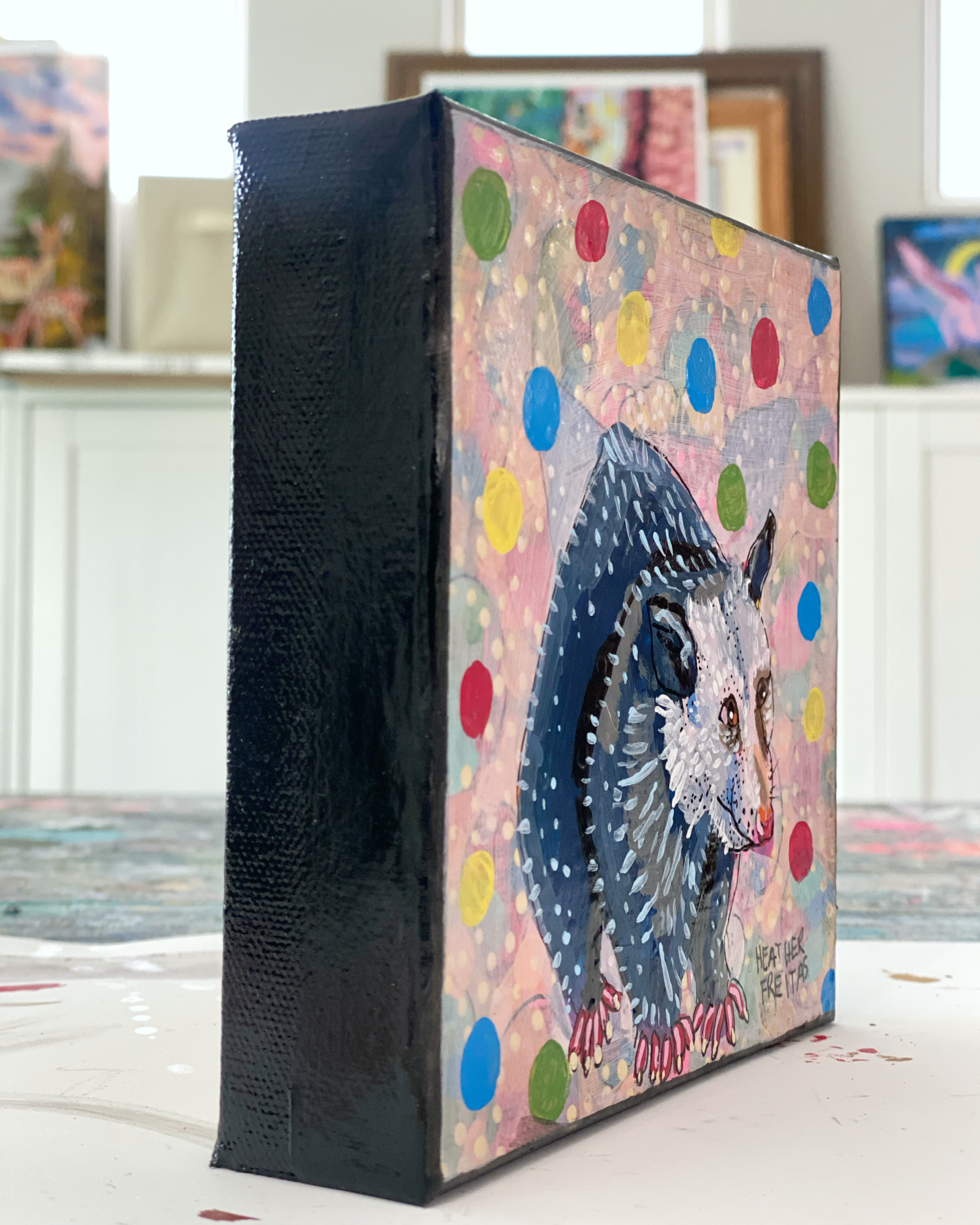 This original painting measures 6 x 6 inches and is mixed media on a deep edge gallery wrapped canvas and does not need to be framed.