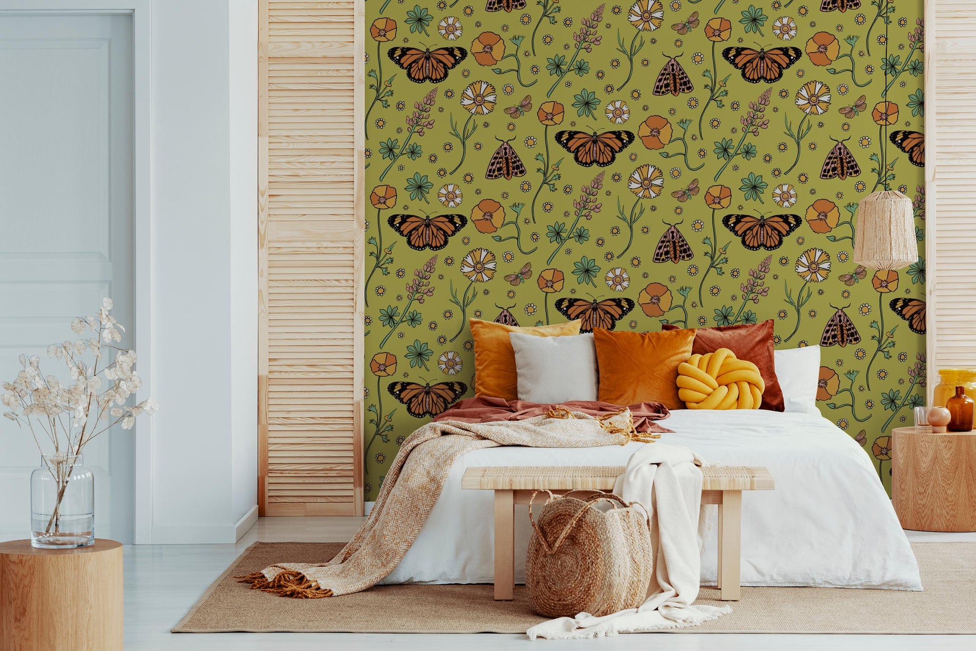 Bring vibrant energy to your space with our Poppy Please Wallpaper in stunning mustard and pink! This eye-catching design, illustrated by Samantha Santana herself, celebrates the beauty of monarch butterflies, moths, and California's gorgeous blooms. Available in both peel-and-stick vinyl and traditional pasted options, it's super easy to install. The best part? It's completely removable, making it perfect for renters or design enthusiasts who love to switch things up!
