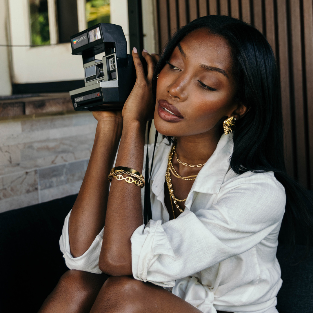 The Quilt Bracelet is a playful gold bangle that adds a cozy, quilted texture to your wrist. Its charming design brings a fun and stylish touch to any outfit, making it the perfect accessory to brighten your day with a little golden glow!