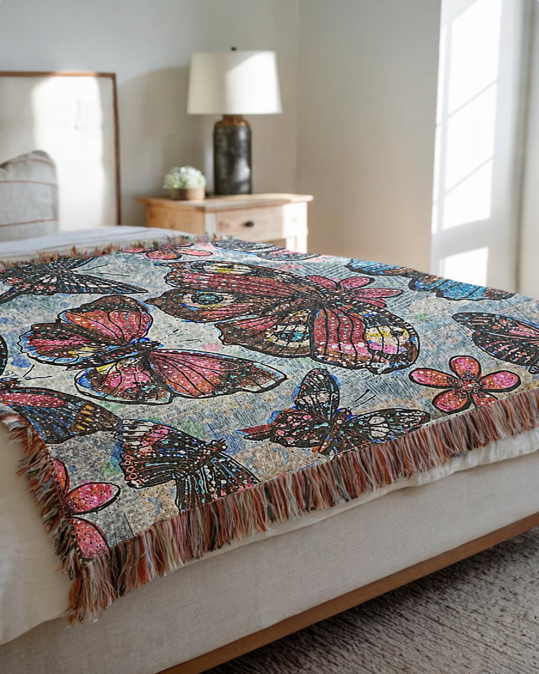 Red Butterflies Woven Blanket