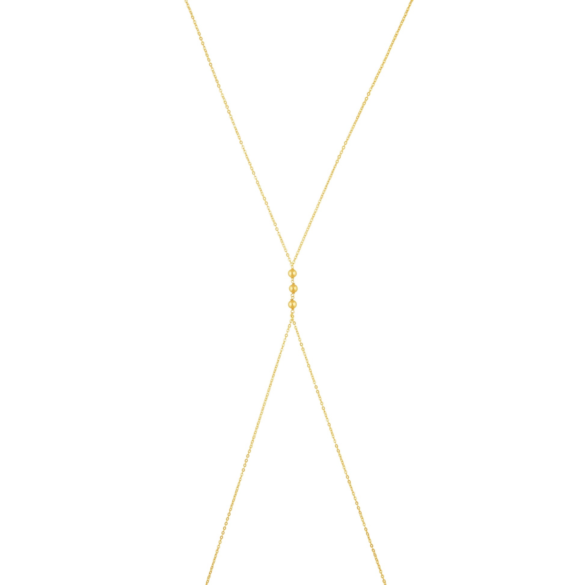 Elevate any outfit with our Reign body chain! Stand out in your bikini or crop top with our Reign Body chain! Two pieces in one, if you wear this under a shirt or dress it looks like a lariat necklace.