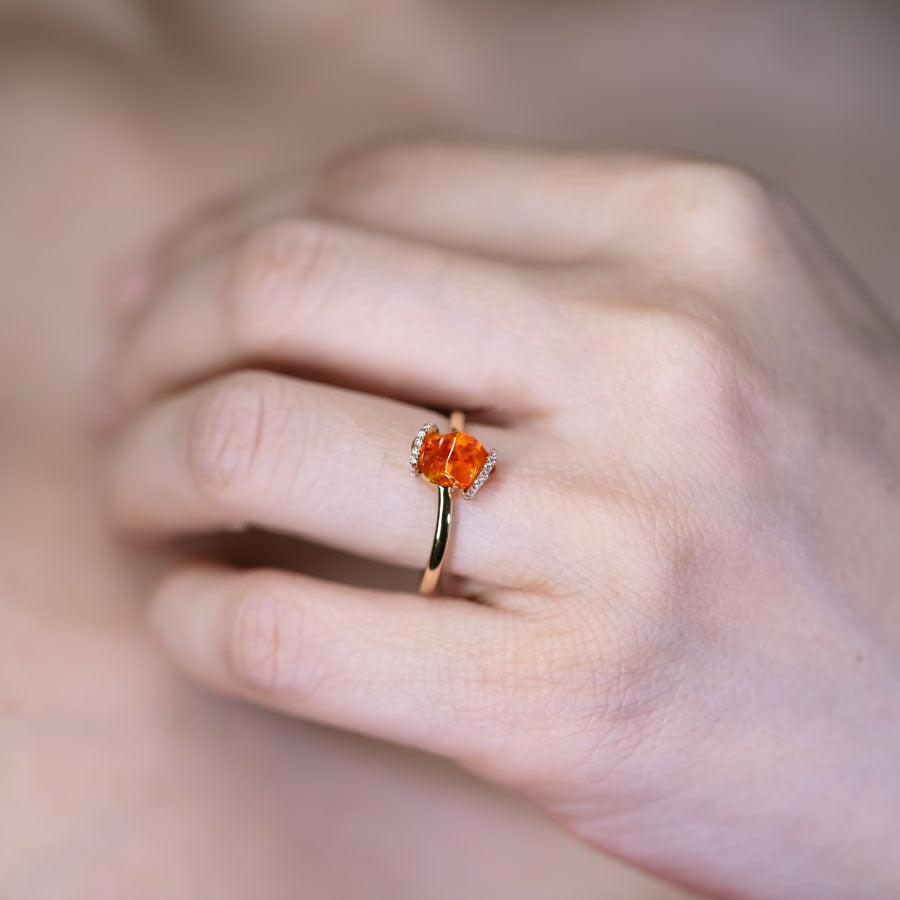 Ribbon Wrap Design Mexican Fire Opal Diamond Engagement Wedding Ring in 18K Yellow Gold.
