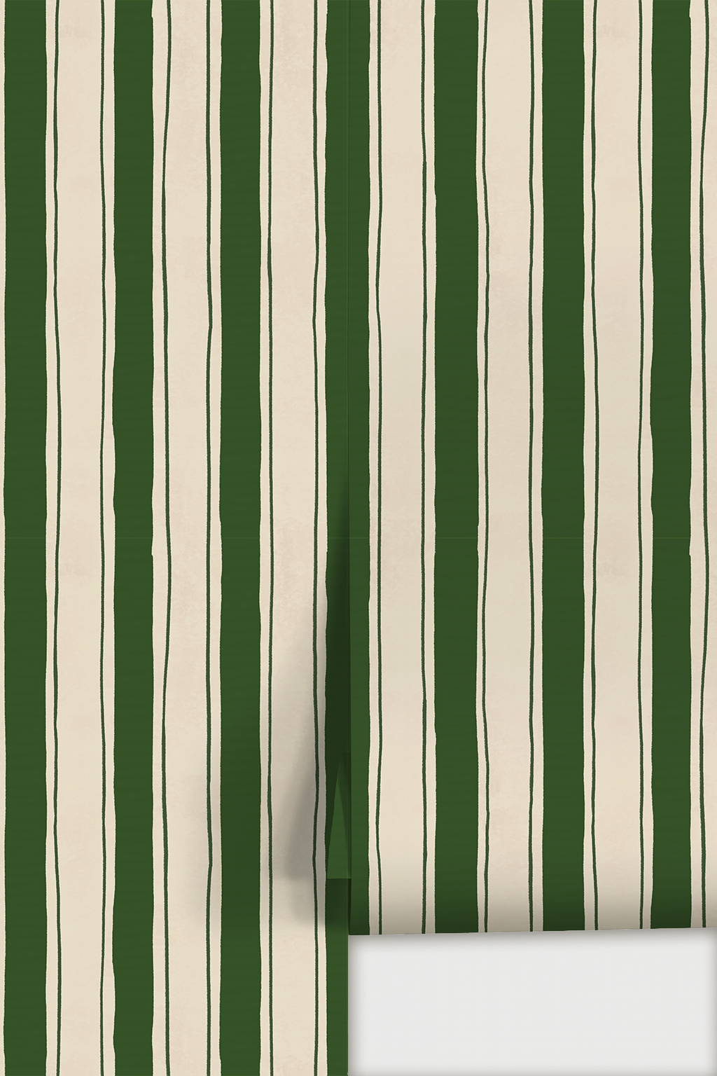 Riviera Stripe Wallpaper, off-white and dark green