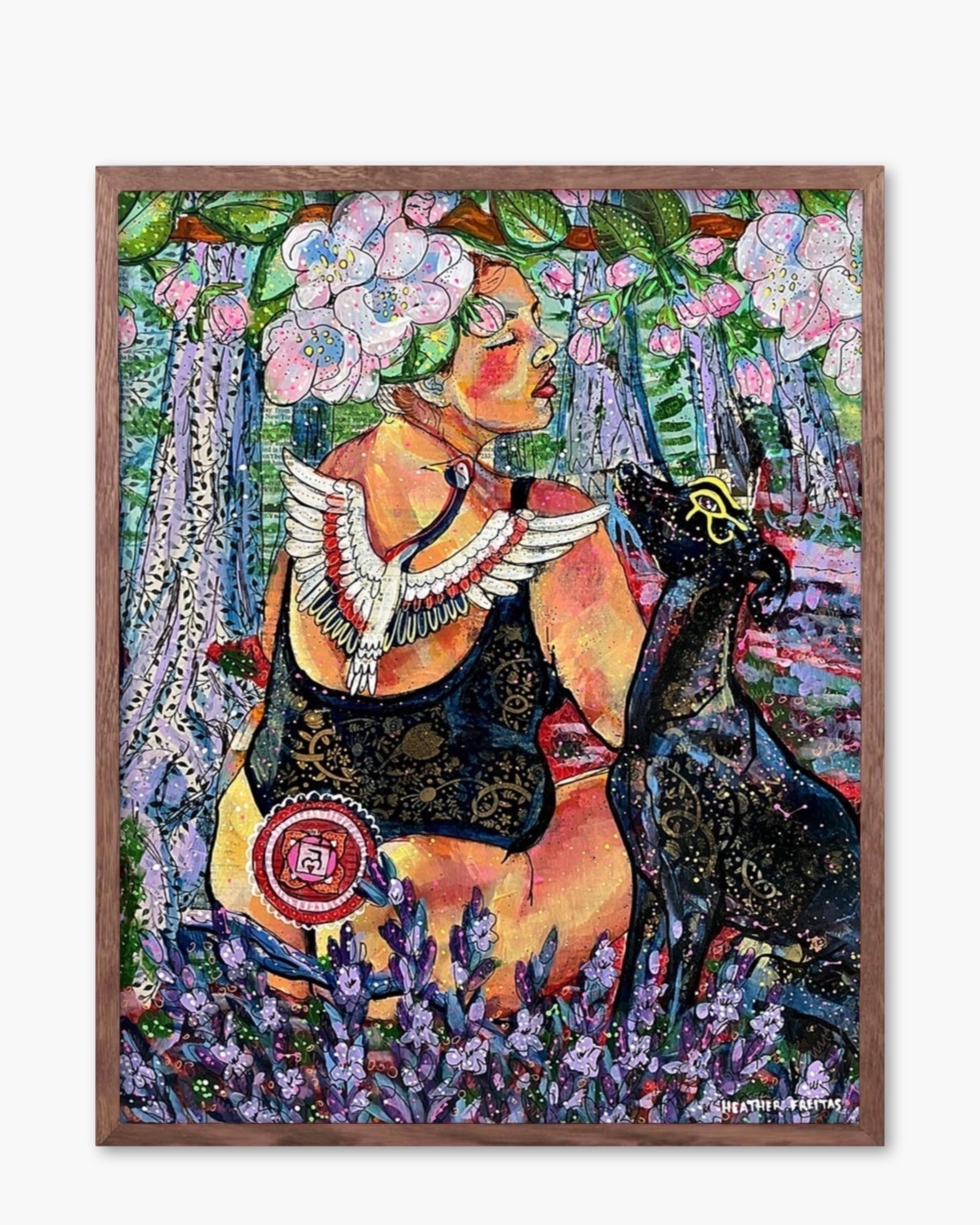 Delightfully dreamy and impossible to forget, these prints are like a soft hug from another world—each one wrapped in Heather Freitas’s signature style: bold, symbolic, and utterly enchanting. With over 1,800 original works sold and adored around the globe, her art has become a coveted escape for collectors and daydreamers alike.