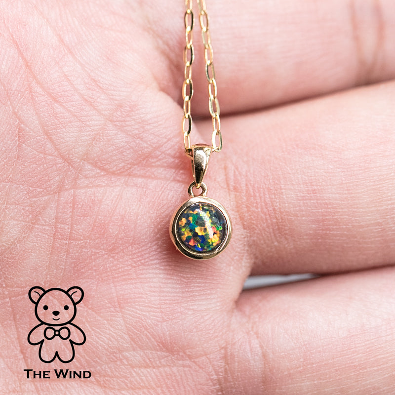 Round Shaped Australian Triplet Opal Pendant Necklace in 14k Yellow Gold.