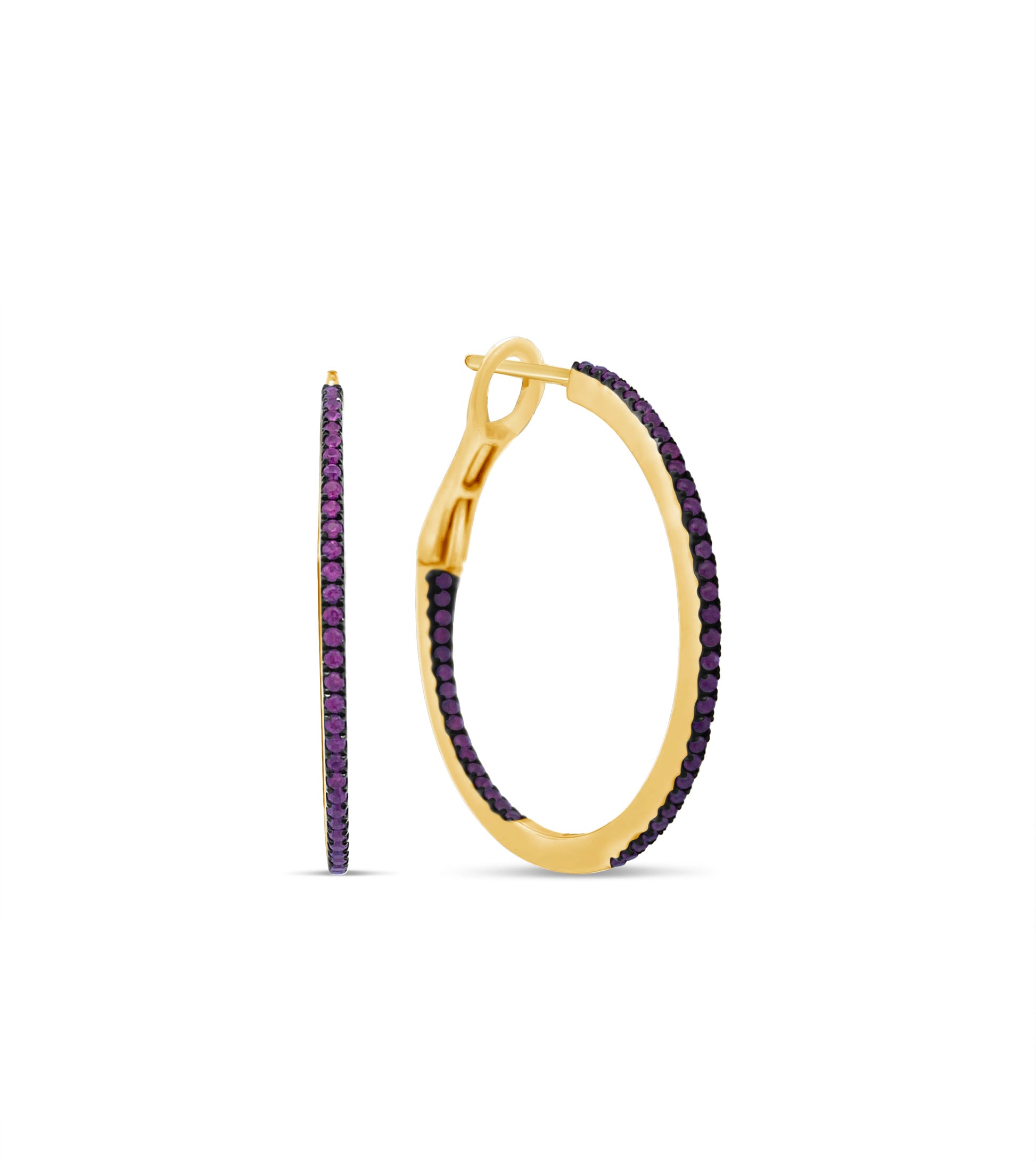 Draw attention to your style with this elegant and eye-catching hoop earring! Crafted with 14k gold and featuring a stunning combination of inside-outside ruby, this luxurious hoop earring will be your go-to accessory for any special occasions. Make a statement wherever you go!