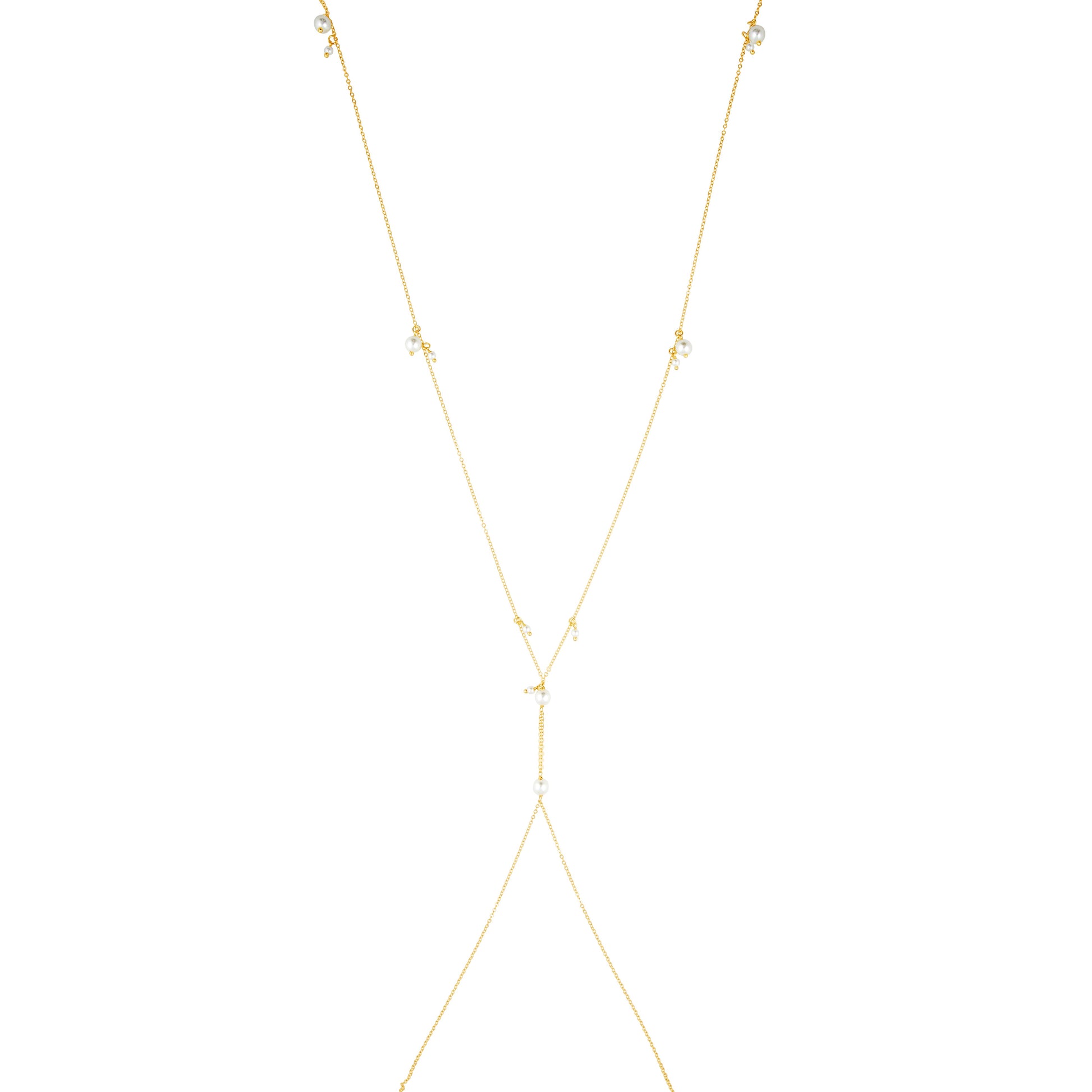 Elevate your style with the Sage Pearl Body Chain, a bold accessory that drapes elegantly across your body. Featuring lustrous pearls, this piece adds a daring touch to any outfit, perfect for making a confident statement at festivals, beach days, or night outs. Embrace your fearless side with this unique blend of sophistication and edge.