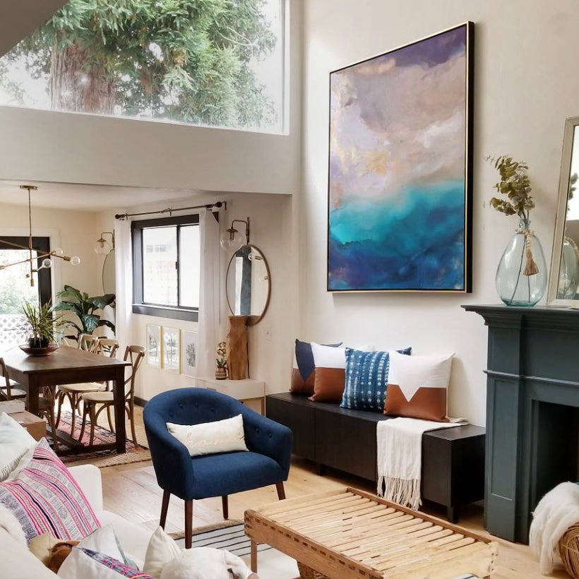 “Saint Helena” pairs beautifully with “Labradorite Dream”. Install photos by Erin of “Kismet House” feature canvas print finished in floater frames.