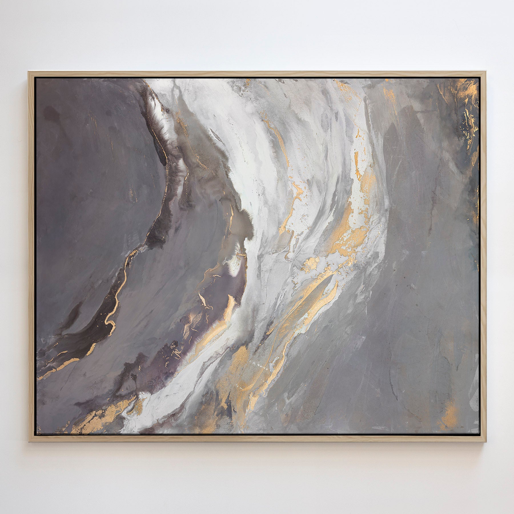 Bathed in a warm neutral color palette, the use of fluid movement carries the viewer around the work.